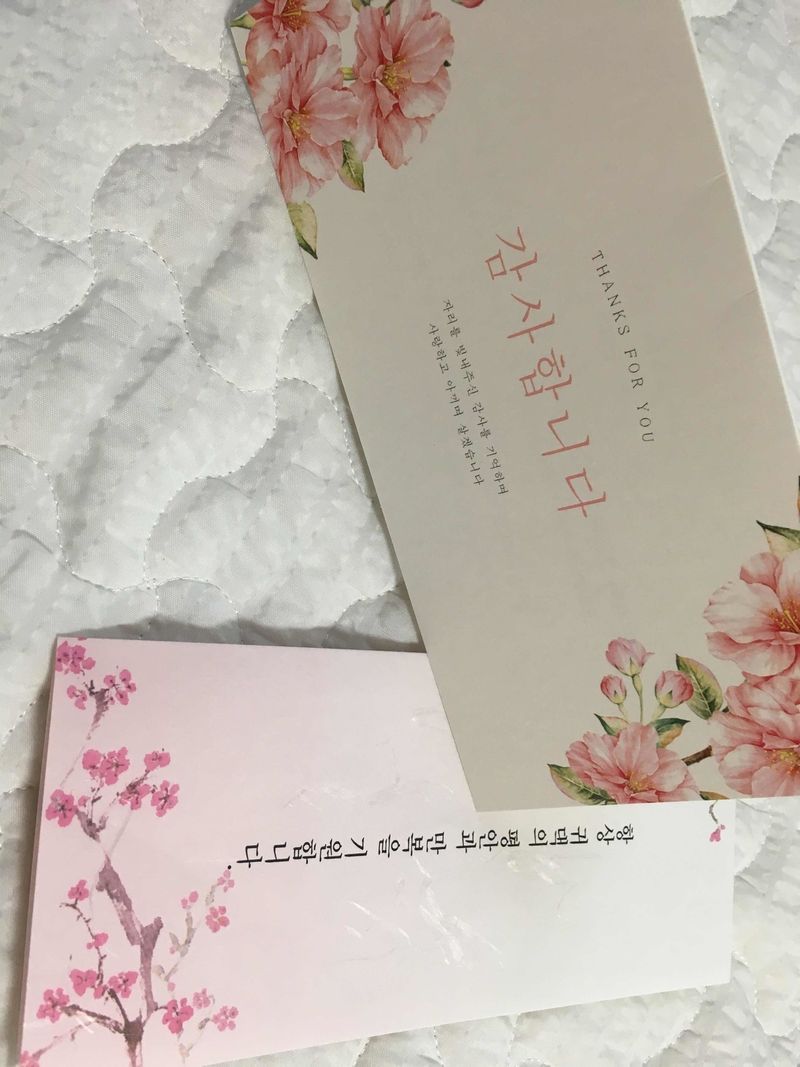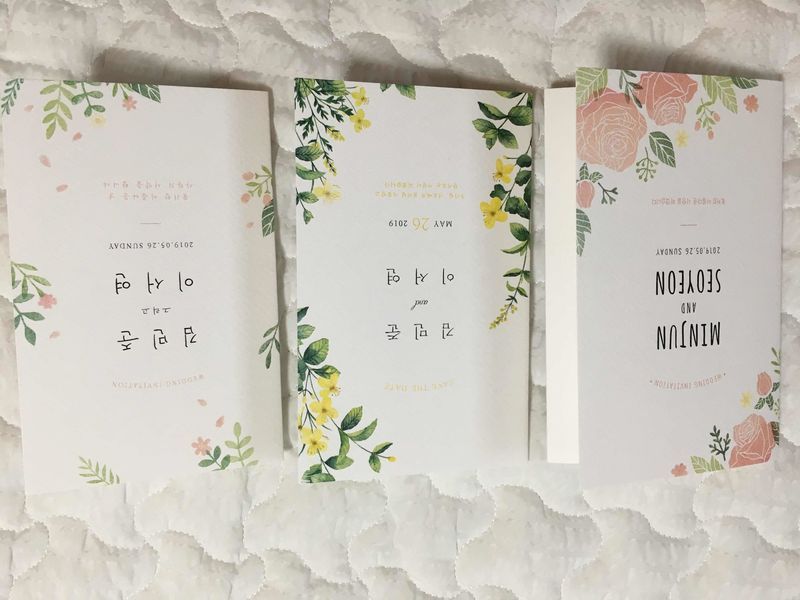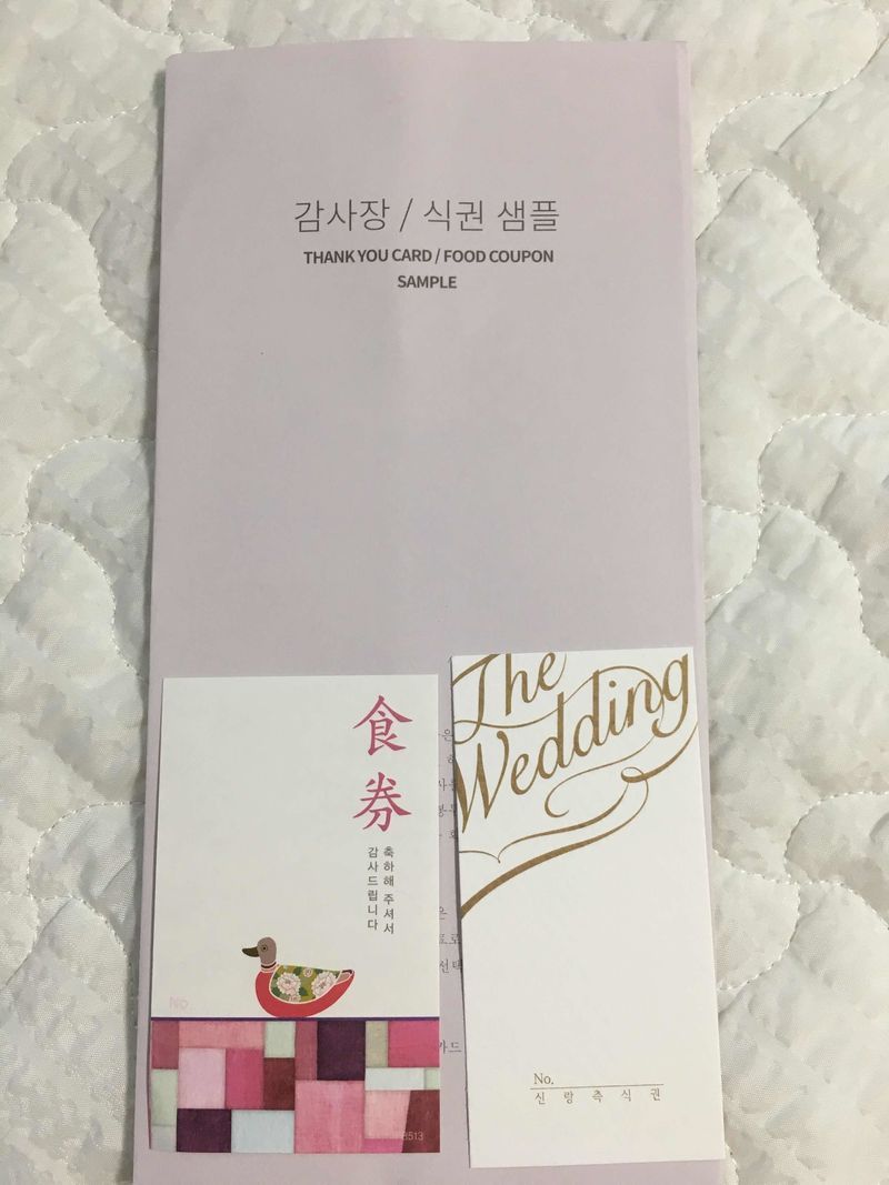 샘플 받고 가장 마음에 드는 청첩장을 골라야 하는데~! 다 이뻐서 고르기가 힘드네용~ ㅋㅋ 아주 다 마음에 들어요~ 디자인 : 추천♥ 저희가 원하는 청첩장은 병풍형이 아닌 3단 스타일에 영어보다는 한글로 작성되어 있는 스타일이였어요~ 이곳이 그런 스타일의 청첩장도 많았고 색감있는 ~ 디자인의 청첩장이 많아서 좋았어요~ 가격 : 추천♥ 청첩장의 품질~! 완전 만족합니다~! 재질이나 디자인이나 ~여러모로~ 모두 마음에 들었어요~ 서비스 : 추천♥ 섬세하게 식권 샘플부터 청첩장 계약시 받아볼 수 있는 혜택부터~ 향기스틱에~ 많을걸 보내주셨어요~ 배송도 빨랐어요~선거일에 주문했고~ 금요일에 받았어요~