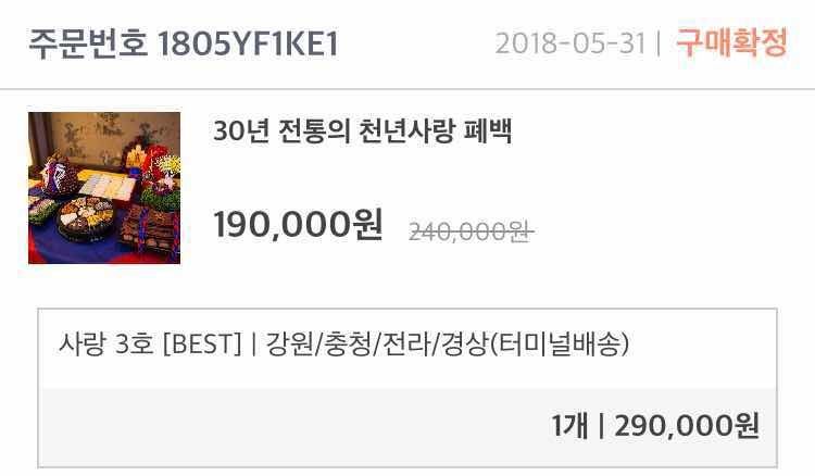 사랑3호 27만원에 지방배송이라 2만원 더내고 29만원 결제했어요! 물론 웨딩북 포인트 쪼끔 써서 할인받았는데 이 점 너무 좋네요♡지방은 고속버스배송으로 예식전날 받을 수 있다는 상담받았고,구성품들이 날씨에 영향을 크게 받는 것들도 아니고 포장 꼼꼼히 해주신다는 설명도 들어서 안심이되네요ㅎㅎ다른 업체들도 봤지만 후기들도 너무좋고 구성도 푸짐해보여서 과감히 샘플시식도 안하고 결정했어요ㅋ.ㅋ 구성 : 추천♥ 폐백을 안하려다 하기로해서 가격대비 푸짐해 보이는 사랑3호 주문했어요~^^ 가격 : 추천♥ 가격대비 구성이 탄탄한거 같아서 그게 제일 맘에들어요! 서비스 : 추천♥ 배송문제때문에 전화상담드렸는데 남자분이 친절하고 꼼꼼하게 설명해주셨어요!