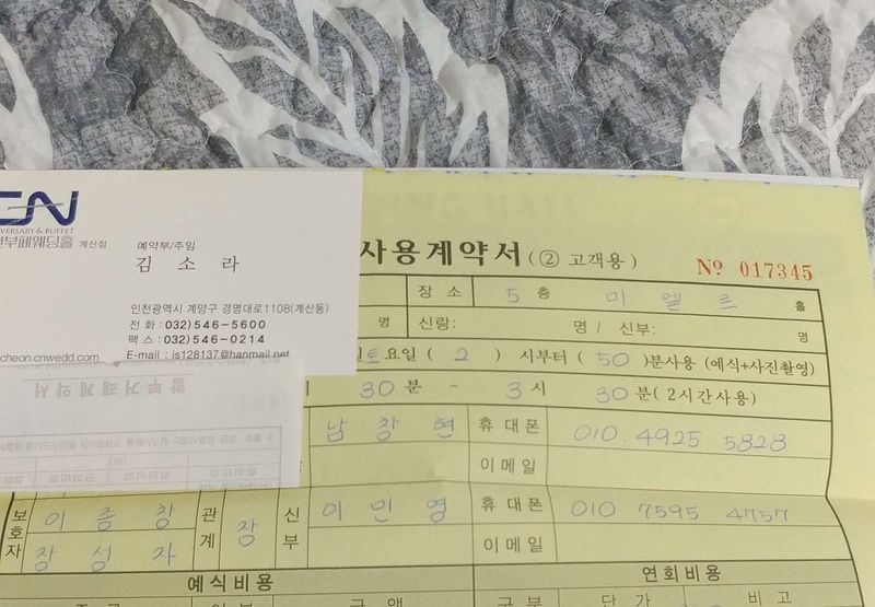 제작년에 친동생이 했던곳이었는데 홀이 참 예뻐서 눈독들이던 곳이에요. 식날짜가 한참 성수기때라 저희는 일찍 갔다고 간거였는데 이미 거의 예약이 찼더라구요ㅠ 그래도 직원분께서 도와주셔서 10월13일 2시로 예약 진행할수 있었어요~ 스드메까지 패키지로 하면 더 저렴하게 좋은홀 이용할수 있었지만 저희는 스드메는 따로 하기로 결정했답니다ㅜ 토탈샵도 지인추천인지라 혜택이 많았거든요ㅎㅎ 층마다 단독홀이고 주차공간도 아주 빡빡하지도 않고 음식도 무난하고 특히 어른들이 선호하시는곳이라 다른곳 보기전에 바로 계약했습니다. 부평관광호텔이랑 비교하고 결정하려했는데 워낙 날짜랑 시간대가 성수기인지라서요ㅎㅎ홀대비 가격적인부분에서 만족스러워요! 홀분위기 : 추천♥ 5층미엘르홀로 했어요~ 높은천장에 검은 인테리어에 조명이 화사한 호텔식 홀이에요 버진로드는 조금 높은편이지만 천장이 높아 그리 높다고는 생각안들었어요ㅎㅎ 음식 : 보통♥ 전체적으로 종류가 많았고 특별히 맛있다는 느낌보다는 다양하고 무난한맛이었어요 서비스 : 추천♥ 홀과 폐백실, 신부대기실을 일일이 한층한층 보여주시며 친절하게 설명해주시고 계약부분도 세심하게 상담해주셨어요