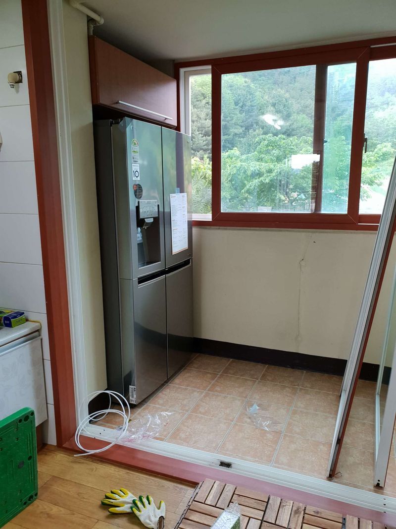 설치하면서 찍은 사진이라 주위가 엉망이네요 ㅠㅠ 요츰은 세탁기랑 건조기를 이렇게 설치해주더라규요. 공간도 많이 차지 않하고 세탁후 바로바로 건조기에 넣기 편하고 좋아요! 냉장고도 무려 얼음이 나오는 젙수기가 딸린거로!! 이렇게 편할수가 없어요~ 하이라이터 사진은 없네요 ㅠ 인덕션이 가격도 비싸긴 하지만 전용 용기를 사야하는 이유로 하이라이터로 했는데 사용하는데 불편함 없고 만족스럽습니다. 역시 가전은 LG 입니다 ! 상품 : 추천♥ 냉장고, 에어컨, 세탁기, 건조기, 스타일러, 하이라이터 구매했습니다. 가전은 무조건 LG 라고 생각해와서 타 브랜드와의 가격차이는 알아보지도 않았어요 ㅋㅋㅋㅋㅋㅋ 신랑이 군인이라 곧 집을 옮길 예정이라서 가능한 사지않고 버티려고 했는데 이왕 같이 살기 시작하는데 편하게 살자는 신랑 날에 못이기는 척 전부 구매했습니다. 가격 : 추천♥ 여러 지점을 가 보았는데요, 지점마다 가지고 계신 상품도 다르고 이런저런 프로모션 따져봐도 큰 차이가 없을을 것 같아서 저희가 살고있는 곳에서 가까운 지점에서 했어요. 지역 특성상 군인이 많은 곳으라서 군인에게 혜택을 주시는 프로모션 덕분에 좋은 가격에 했습니다. 예산보다는 많이 지출했어요. 건조기는 생각도 안하고 있다가 필요할 것 같아 추가했거든요. 장마가 막 시작된 지금은 너무너무 잘 한 선택인 것 같아요. 전에도 미세먼지 때문에 창문을 열어놓을 수가 없었거든요ㅠ 냄새걱정 없이 뽀송뽀송한 빨래가 나오니 너무 좋습니다. 에어컨, 건조기, 스타일러가 전기세 많이 나오면 어쩌나 걱정했는데 생각만큼 큰 금액 차이는 아니네요~ 시원하고 뽀송하게 지낼 수 있을 것 같아요! 서비스 : 추천♥ 신랑이랑 구매 고민하는 사이에 저희는 잘 모르는 이런 저런 혜택을 끼워주시고 더 좋은 가격으로 구매할 수있는 방법을 찾아주셔서 그 사이에도 구매가가 점점 다운되는 기적을 보았습니다. 이미 신혼집이 있으니 가능한 빨리 가전 넣어달라고 부탁드려서, 물건이 준비되는대로 한가지 한가지 들어와서 집을 떠나지 못한다는 불편함은 있었지만, 저희 요청을 충실히 들어주신거니 감사할 따름이에요. 가전 들어오니 진짜 제 살림이 생긴것 같네요^^