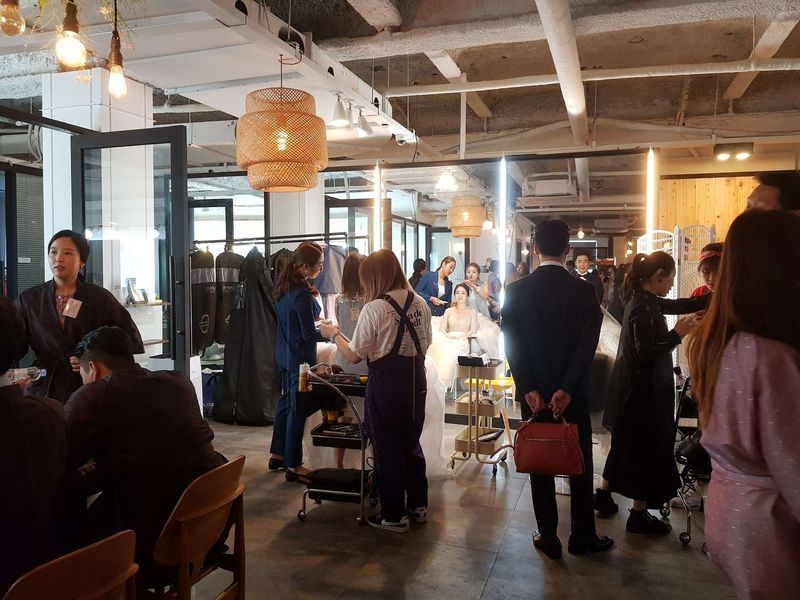 너무 많은 사람들이 잇어서 걱정했는데 그래도 시간에 잘 맞춰서 원하는 스타일의 헤어와 메이크업을 잘 해주셨어요 베이스적인 것은 다른 보조 선생님들이 먼저 해주시고 담당 선생님이 오셔서 원하는 스타일과 드레스와 어울릴만한 느낌으로 맞춰 진행했습니다 바쁘셔서 정신없고 힘드실텐데 담당선생님들 너무 친절하셨어요~!! 스타일 : 보통♥ 뭔가 환상과는 다른부분이 좀 있었어요 하지만 시간안에 빨리 이루어져야 하는 헤어와 메이크업인 만큼 시간 배분을 잘해주셨어요 담당샘 : 추천♥ 계속 이야기해나가며 단점인 부분들을 보완해주셨어요 서비스 : 추천♥ 신부인 저로써는 계속 봐주시고 신경써주시고 만족했어요 신랑은 아무래도 기다리는 시간이 많으니^^...