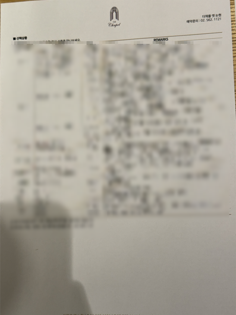 지난 번 알아본 웨딩홀 중에 실제 투어를 다닐 곳을 추려봤다 https://blog.naver.com/219183/224131835962 웨딩베뉴 선정 : 강남권 밝은 홀 찾기 프로젝트 결혼을 하기로 하고 나서 시기를 정했으니 어떤 홀을 할지가 젤로.. 고민이었음 로망이 없다고 생각했던 내... blog.naver.com 더채플앳논현 더채플앳청담 아펠가모 선릉 아펠가모 반포 상록아트홀 셀럽앤어셈 여러 웨딩카페에서 찾은 꿀팁은 다음과 같았다. ✅ 주말에 암행 다녀와보기 ✅ 홀 투어 하루에 몰아하기 ✅ 제일 하고 싶은 곳을 마지막으로 예약하기 그래서 홀투어 예약하려고 하니 그 담주 주말에 상담전화 예약이 열리니 그때하라는거 예약전화가 티케팅 수준이라는데 일하면서 어떻게 그걸하나 했는데 웨딩북 어플 통해서하니까 대신 예약을 해주셨다!! 완전 빠르고 일처리도 착착 해주셨음 최고 👍 현실적으로 저 많은 곳을 다 돌아다니진 못하기에 미리 카페나 블로그를 통해 견적을 받아보았고 남자친구랑 주말에 암행을 다녀왔다 여기저기 돌아다녀보고 결국 남은 곳은 더채플앳논현 한 곳 뿐이었습니다 ^^ https://blog.naver.com/219183/224131457643 더채플앳논현 스마트 예약 후기 결혼 소식을 친한 친구들에게 알리고 다들 하나같이 입을 모아 말하는 것이 있었으니 홀부터 잡아 이미 결... blog.naver.com 스마트예약을 통해 견적도 알고 갔고 VR로 보고 웨딩홀을 전경도 보았었다 심지어 실제로 결혼식도 봐서 대충 식장의 분위기는 알고 있었음 아예 처음 가보는 분들이라면 VR로 좀 보고 현장 분위기는 상담 날 조금 일찍가서 식을 실제로 보는 것도 좋을 거 같다 우리가 갔을때는 한창 식이 이뤄지고 있을때였고 주차장으로 들어가는 차가 많아 약간 막혔다 수많은 주차요원 분들이 안내를 해주셨는데 상담차량과 혼주차량은 건물에 대는 것 같았고 다른 하객 차량들은 2층에 내려서 발렛으로 외부에 주차하는 거 같았다 우리는 지하주차장에 내렸고 발렛파킹을 해주셨다 (비용 발생X) (사진을 별로 못 찍어서 VR로 대체한다 근데 진짜 똑같음) 상담실은 1층 정문에서 들어오면 바로 앞 보이는 곳에 있다 보라색 점 있는 곳이 상담실 우측이 꽃집 더 오른쪽으로 들어가면 혼주메이크업샵 (보보리스)랑 신랑신부전용 엘리베이터가 따로 있었다 상담실 들어가서 '000신부님' 확인 받고 더 안쪽 깊숙히 있는 상담실로 들어갔다 들어가면 간단한 다과랑 음료를 준비해주고 매니저님이 들어오셔서 날짜에 대한 견적과 부대상품에 대해 설명해주셨다 계약 전에 홀에 대해 우선 투어를 했다 우리가 보고 있던 라메르홀이 마침 식이 진행중이라 같이 들어가서 간단하게 설명을 들었다 원판사진을 찍을때나 예식이 이뤄지지 않을때는 이정도 밝기였고 입장이나 예식이 이뤄지는 동안에는 조명이 꺼져서 이런 느낌이었다 어두운 채플홀이었다 어두운홀 싫어 신부였는데 경건한 느낌에 신랑신부에게 적당히 이목이 집중되었고 조명이 눈에 띄어서 방해되는 느낌이 아니라 마음에 들었다 앞쪽 단상은 이런 느낌이었다 라메르(La mer)라는 뜻이 프랑스어로 바다라고 알고 있었는데 그래서 그런지 식장 내부 양 옆에 물이 있었고 그 수로가 단상까지 이어지는 디자인이었다 처음 남자친구랑 왔을때 퀴퀴한 냄새가 난다고 했는데 다시 와보니 살짝.. 생화향보다는 꿉꿉한 냄새가 나서 매니저님에게 여쭤봤고 '안개꽃이 개화하면서 날 수 있는 향인거 같다'라고 하셨다 그런감.... 그렇다면 그런거지.....뭐 뭐 겨울이라 난방을 틀어서 더 그런걸 수도 있고 여름이면 오히려 에어컨을 틀고 제습도 할거라 괜찮을 거 같았다 그리고 다른 후기에도 그런 얘기는 별로 없어서 문제되지 않을거라고 생각했다 또 맘에 걸리는게 있다면 저 두 눈을 때리는 핀라이트 다른 사람들 스냅사진에도 너무 잘 보였다 홀을 보고 나서 신부대기실도 봤는데 솔직히 신부대기실은 내 취향 아니였음.... 왜 홀은 화이트톤으로 해놓고 여기는 핑크색 꽃이냐고요 ㅠ 왜 왜 색있는 생화가 사진이 잘 나온다는 얘기를 얼핏 들은거 같긴한데 진짜....내 취향 아니였음........ 참고로 여긴 라포레홀 신부대기실인데 여기 장식은 핑크 아니잖아요 그나마 마음에 드는 부분은 오른쪽의 발코니인데 여기에서 연출사진을 많이 찍더라 이외에도 폐백실, 연회장 등등 둘러보고 다시 상담실로 돌아왔음 홀 투어가 끝나고 견적을 확인했다 온라인과 오프라인 견적이 동일했고 우리는 여름 예식이라 프로모션 중이었다 (이것도 홈페이지에 나와있었음) 당일계약 프로모션으로 플라워샤워 or + 혼주헤메 2인 or 웨딩카 or 포토부스가 있었다 당일계약 프로모션은 그 자리에서 선택하지 않아도 추후에 미팅이나 연락하면서 선택하면 되는거 같았다 추가로 현장계약프로모션으로 대관료+식대 총 비용의 일정부분을 할인받을 수 있었다 (현장계약은 상담실 나가면 끝이다) 우리는 여기 하나만 보고 왔고 예상과 크게 다르지 않은 홀 컨디션 + 부대상품 + 견적에 그 자리에서 바로 계약을 하고 왔다 드디어 가장 중요한 나의 웨딩 베뉴 선정 끝.... 나 이제 진짜 결혼한다.............