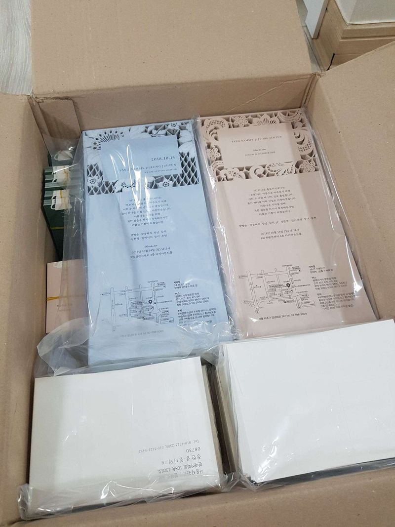 550장 제작했구요 조금 가격이 있는거 했더니 살짝 비쌌음 혜택 있긴한데 샘플후기 수령 후기 다 써야 제공해줘요 좋은게 잇아면 다른곳은 수정요청하면 며칠씩 걸린다던데 여기는 빨리빨리 처리해줘서 너무 좋앗음 그건 대만족이네요 디자인 : 추천♥ 다른곳에.없는거 은근 많아용 그래서 맘에.들엇음 가격 : 보통♥ 550장 찍었구요 예쁜거 골라서 그런가 쪼끔 비쌌음ㅜㅜ 서비스 : 보통♥ 구입하면 모바일청첩장이랑 식전영상 제작 무료에용 후기쓰면여..