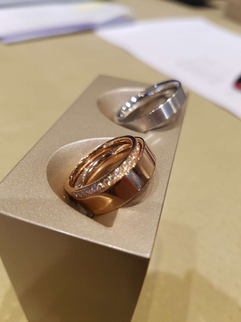 결혼반지+가드링(다이아) 제작했습니다. 색감이 좋고 착용감이 편안합니다. 다른 샵 두군데 보고 왔었는데 신부 손이 가장 화려하게 빛나서 바로 맘 결정했습니다. 방문 추천합니다. 디자인 : 추천♥ 반지 디자인을 원하는대로 설정해서 제작이 가능합니다. 시스템에서 바로 모델링이 가능해 원하는 결혼반지의 디자인을 바로 확인 가능합니다. 품질 : 추천♥ 디스플레이 되어있는 제품들에서 형태나 색감등을 확인 가능합니다. 세 번째 샵 방문이었는데 가장 훌륭했습니다. 서비스 : 추천♥ 청담점 방문했는데 팀장님께서 매우 친절히 전문적으로 상담해주셨습니다. 발렛비도 안받습니다.