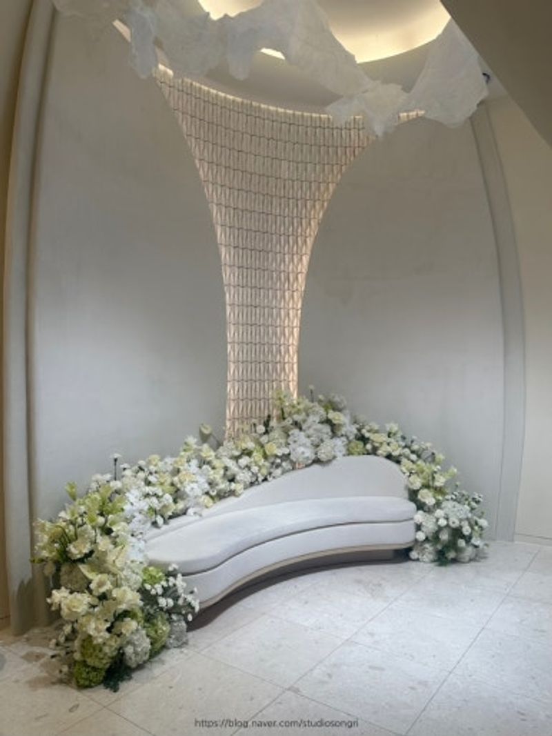 안녕하세요 ! 첫 블로그를 개시한 김모씨입니다. 저의 게시글 첫 글은, 무려 웨딩홀 상담 및 계약 후기를 가져왔습니다. 기존 블로그는 망하기도 했고(?) 이왕 후기 이벤트로 쓸거 자세하게 잘 쓰자 싶어서, 한 번 거창하게 시작해보려합니다. 후기 작성에는 조금 편한 말투로 적어보도록 하겠습니다 🫶🫶 스타뜨 상담 다녀온 내용을 적기 앞서, 먼저 웨딩 로망이 전혀 없었던 김모씨는 단독 홀이 있는 작은 스몰웨딩을 원했다. 그러나 ! 결혼식은 나의 축제가 아니기에, 이런 저런 다양한 의견을 수용하여 내린 결과 나의 조건은 다음과 같았다. ⭐️ 김모씨의 웨딩홀 조건 (을! 쓰다보니 매우 까다로워짐을 곁들인) ⭐️ 웨딩홀은 작은편이나 연회장은 많은 인원이 수용가능한 홀. (이유: 드레스를 엄청난 풍성이를 입기 싫었고, 단상 위에 훌쩍 올라가 사람들을 내려보며 걷는 것도, 긴 버진로드를 것는 것도 원하지 않았다. 소박한게 좋았으나 손님이 300명 이상 올 상황이었음.) 너무 어둡지 않은 홀. (이유: 어둡고 웅장한 분위기를 피하고 싶었다가 더 맞는 표현인듯. 반짝이 옷도 입기 싫었다.) 밥이 맛있는 곳. (이유: 아무래도, 손님들을 대접하는 상황이니까 식사 부분에서 아쉽지 않았으면 했다. 결혼식을 많이 다녀보지 않았지만 밥이 맛있던 곳들은 식장 이름이 잘 생각 안나는데, 식사가 별로였던 식장은 기억에 남는다.) 가능한 단독홀 ! (이유: 홀이 2개 이상인 결혼식 장에 가봤는데 너무너무 복잡하고 어수선했다. 단독 건물이 아니라도 홀이 하나만 있었으면 했다. 이건 나보다도 남자친구가 확고하게 정해준 기준!) 식 간격이 120분 이상인 곳 ⭐️중요⭐️ (이유: 내가 기억남는 상황 중에, 식사 중에 다음 타임 식사를 위해 정리해달라고 얘기를 들은 적도 있었다. 또 식을 마치고 나오면 다음타임 신랑신부를 로비에서 만나고 화환과 사진이 전부 교체된 상황을 맞이하기도 싫었다. 무엇보다 손님들과 신랑 신부 혼주가 모든 일정을 급하게 진행하고 싶지 않았다. 이게 사실 제일 중요한 조건이었다.) 뭐 주차나 위치도 있었는데.. 그건 반은 내려두고 식간격이 2시간인 서울 내 예식장, 너무 웅장하지 않은 예식장을 고르자니 많은 후보들이 우수수 탈락되어 후보가 몇 개 남지조차 않았다. 그리고 더채플 대치를 알기전에 상담을 거친 웨딩홀은 다음과 같았다. 브라이튼하우스 강남(3시간 예식, 단독홀이나 인원에서 결국 탈락.) , 더채플 논현(홀이 2개로 운영된다.) , 아펠가모 광화문(상담해주신 분 쏘 스윗. 거리와 식시간만 아니었음 계약했을지도.) (소노펠리체는 상담일정이 3월이라 강제 패스 ㅠ ㅠ) 그래서 찾다가 발견한 그 곳은... ! ! ! 🔔 더채플 대치 🔔 위에 조건들을 모두 충족했고, 웨딩홀이 작았는데 작아서 오히려 좋았다. 깔끔한 화이트 톤에 소노펠리체에서 마음에 들었던 미술관 같은 느낌의 홀 디자인도 마음에 들었다. 사실 더채플 브랜드가 가진 정갈하게 예쁜 느낌을 너무 좋아하는데, 또 종교는 없다보니 너무 홀리한 느낌은 약간 부담이 갔었다. 그런데 여기는 그런 분위기가 싹 빠지고 그냥 예뻤다 ㅠ ㅠ 그래서 호불호가 있을 것 같았고 나는 완전 호 ! ! ! 였다. 공간을 소개하면서 설명해보자면, 먼저 입구 들어오자마자 보이는 로비와 신랑신부 축의대다. 로비는 넓은 편은 아녔고, 신랑 신부 축의대도 역시 작은 편이긴 하다. 그러나 신상 웨딩홀이 주는 깔끔함과 웰컴 드링크 바 등, 공간 안에 알차게 다 있었고 무엇보다 공간이 너무 예뻤다. 신부 대기실은 로비 반대편에 보일듯말듯 있는데, 앉아서 인사를 나누기도 하고 혹은 저 공간에 서서 인사를 하기도 한다고 한다. 공간만 생각하면 서서 맞이하는 것도 좋겠다 싶은데, 그건 다가오면 고민해봐도 될 것 같다. 종종 후기에 하객이 들어오자마자 신부가 보여서 내향형 신부들은 부담스럽다는 말도 있었는데, 나는 뭐 그날 가장 예쁜 모습으로 있을테니까 모두가 보면 오히려 좋아! 였고 (본인 I에 가까운 E임.) 커튼을 절반정도 쳐서 살짝 가리는 것도 가능하다고 했다. 이거 보세요 ㅠ ㅠ 너무 깔끔하고 예쁘고 다했다구요 ㅠ ㅠ ㅠ💛 사실 정말로 봤던 홀 중에서는 가장 작았다. 160명 정도 착석 가능하다고 했는데, 인원적인 면도 오히려 우리에게는 괜찮았다. 원래 스몰웨딩을 생각했을 때 가까운 친척과 친구들만 부를 생각을 했고, 그 외 식을 보지 않으셔도 될 손님들은 따로 식사를 대접해야하나 라는 대안도 나왔기에.. 연회장이 300명 이상 수용가능하다는 점으로 충분히 만족스러웠다. 신부가 입장하는 길도 짧고 간결했다. (매우 만족) 아! 연회장도 좋았던 점이 위에도 말했듯, 식을 보시지 않고 바로 식사하시러 가실 손님들이 좀 있을텐데, 시간을 나눠서 2층과 3층으로 운영이 된다. 3층은 식시간 30분 전부터, 2층은 식시간부터 2시간씩 진행이 된다. 남자친구는 이런 부분을 오히려 장점으로 받아들였고, 나도 오히려 나눠서 안내가 됨으로, 가까운 사람들과 부모님 쪽의 손님들이 잘 구분 될 것 같다고 생각했다. 연회장 이용시간은 다음과 같다. 왼쪽이 2층 오른쪽이 3층 연회장 이용시간이다. 그래서 어떻게 했나구요 ?!! 계약했지 