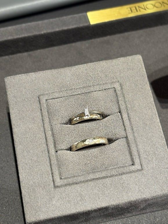 지난 번 민준주얼리 방문 후 우리의 취향이 질감 있는 디자인이라는 걸 알고 텍스쳐와 디테일 중심 디자이너 브랜드 누니도 방문해보기로 결정! 이번에도 역시 웨딩북 통해서 상담 예약 후 방문했다. 미리 봐둔 디자인은 이 정도가 있었는데 '윤슬' - for Women : 디자이너 주얼리 NOONEE 디자이너주얼리, 웨딩밴드, 웨딩링, 누니주얼리, 프로포즈링 www.nooneejewelry.com Like a tree - for Women : 디자이너 주얼리 NOONEE www.nooneejewelry.com Asterism - for Women : 디자이너 주얼리 NOONEE 디자이너주얼리, 웨딩밴드, 웨딩링, 누니주얼리, 프로포즈링 www.nooneejewelry.com Un bacio - for Women : 디자이너 주얼리 NOONEE 디자이너주얼리, 웨딩밴드, 웨딩링, 누니주얼리, 프로포즈링 www.nooneejewelry.com The Plain (Shine) - for Women : 디자이너 주얼리 NOONEE 디자이너주얼리, 웨딩밴드, 웨딩링, 누니주얼리, 프로포즈링 www.nooneejewelry.com 이 중 토너먼트를 통해 최종 남게된 디자인은 Like a tree와 Un bacio 두 가지였다. 윤슬도 예뻤는데 정돈된 느낌이 비교적으로 덜 했고, 아스테리즘은 반짝이는 디자인이 우리에게 어울리진 않았다 나만 예쁜걸 고를 수 없고 같이 어울리는 디자인을 고르자니 꽤 어려웠다..! 1. Like a tree (가로결) 세로결도 예뻤는데 가로가 더 결혼반지 같은 느낌이 있었다(?) 남편 반지는 샴페인골드로 스톤 없이 질감만 들어간 디자인으로 보았고, 내꺼는 화이트골드에 상단에 다이아 세팅이 들어간 디자인을 보았다. 다른 디자인은 다 샴페인골드가 제일 예뻤는데, 다이아몬드와 어울리는건 샴페인골드보다는 화이트가 확실히 일체감 있게 잘 어울렸다. 남편은 광이 없고 질감있는 디자인이 어울리고 나는 다 잘 어울려서(?) 아쉬웠다.. 운바치오와 비교했을 때는 약간.. 전통적이라고 해야하나.. 할머니 반지(?) 같은 느낌이 있었다. 내꺼엔 가운데 질감은 그대로 두고 위아래에 라인이나 밀그레인을 넣고 싶었는데 그렇게는 디자인이 안된다고 하셨다 아쉽.. Like a tree - for Men : 디자이너 주얼리 NOONEE 디자이너주얼리, 웨딩밴드, 웨딩링, 누니주얼리, 프로포즈링 www.nooneejewelry.com 2. Un bacio 밀그레인이 들어간 디자인은 클래식하면서 단아하고 확실히 정돈된 느낌이 들어서 예뻤다. 밀그레인과 바디 부분 컬러를 투톤으로 넣을 수도 있었는데 진짜 예뻤다.. 밀그레인 없이 질감만 있는 디자인에 다이아가 간격을 두고 한바퀴 세팅된 디자인은 캐주얼하면서도 유니크하고 너무 예뻤다.. 결혼반지! 느낌은 덜했지만 평소에도 그냥 편하게 착용할 수 있는 무드였고 격식 있는 자리에서는 가드링을 함께 끼는 것을 추천해 주셨다. 자연광에서도 비교해 볼 수 있게 해주셨는데 나는 운바치오가 어울리고 남편은 나무가 어울려서 대혼란.. 운바치오에 거의 마음을 빼앗겨서 자기는 상관 없다고 그냥 내가 하고싶은거로 하라고 했는데 그래도 같이 어울리는 걸로 해야할 것 같아서 결정은 못하고 계약서만 받아서 유선으로 연락드리기로 하고 나왔다. 누니주얼리 한남 본점 계약 혜택 💝 ✨ 시크릿스톤, 각인 무상서비스 ✨ 현금 이체시 5% 할인 (현금영수증 발행 가능) 당일계약 혜택 💝 ✨10만원 할인 ✨ 블로그 또는 결혼정보카페, 스레드, 영수증리뷰 밴드 수령 하기 전까지 작성완료 시 5만원 할인 웨딩북 단독혜택 🎁 ✨ 250만원 이상 구매 시 10만원 상품권(온라인) 증정 ✨웨딩밴드(남,녀)+ 웨딩링(3부 이상) 구매 시 14k 7mm 아코야 진주 목걸이 증정 ✨ 웨딩북 후기 작성 시 3만원 페이백 당일 계약금 50% 지불 반지 수령 8~9주 소요 민준주얼리에서는 앉아있으면 편하게 알아서 디자인을 골라서 반지를 갖다주시고 디자인 종류도 훨씬 많았는데 누니는 일단 돌아다니면서 토너먼트를 통해 탈락시킬 애들 탈락시키고(?) 최종 두세 가지 디자인을 골라 자리에 앉아서 보는 방식이었다. 홈페이지에 있는 디자인을 기본으로 변주가 조금씩 되어 매장에는 종류가 더 많았다. 새로 나온 세이지골드 색상은 디피 되어있는 제품을 볼 때는 예뻤는데 착용해보니 피부톤에는 샴페인골드가 찰떡이었다. 그래도 다양한 컬러톤이 있어 선택의 폭이 넓었다. 남편은 무슨 그레이? 색상도 잘 어울렸다. 그리고 자연광에 나가서 비교해볼 수 있게 해주시는 점이 평소 착용 느낌을 볼 수 있어 좋았다! 상담 시작에 앞서 5분 정도는 브랜드 소개와 히스토리, 세공 방법의 차이 등에 대해서 설명해 주셨다. (남편도 종로랑 비교해 세공의 차이가 느껴진다고 했다. 돈은 없으면서 안목만 높은 우리였다..) 누니는 금액대가 높은데 아무래도 둘다 맘에 쏙 드는 디자인을 찾지 못해 다른 곳에서 계약할 것 같다.. 근데 팥죽색 케이스 너무 예쁨.. 소그노와 은영주얼리도 더 가보고 둘 다 맘에 쏙 드는 반지를 찾을 수 있길..!