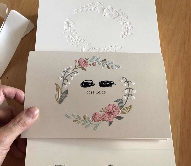 바른손과 비핸즈외에 많은 업체들에서 샘플을 받아봤어요 가격대비 예쁘고 크기도 적당하고 품질도 괜찮아보였어요 처음에는 비핸즈카드의 샘플이 맘에 들었는데 여러 사람의 의견을 반영하다보니 바른손카드로 진행하게 되었어요 청첩장 시안 수정요청하면 빠르게 진행됐고 가능한 선에서 수정요청이 됩니다. 주문하고 택배로 받아본게 1주일 정도 걸렸고 종종 인쇄가 잘못 된 경우가 있다고 했는데 저희는 너무 깨끗하게 잘됐어요 ㅋㅋㅋㅋ 마지막 사진이 실제 받아본 청첩장이에요 봉투랑 청첩장 여분이 한두장 정도 있었어요 웨딩북 할인으로 주문하고 포인트 적립되서 좋아요 디자인 : 추천♥ 청첩장이 심플하고 예쁜 디자인이 많았어요 입체적으로 볼록하게 처리된 것들이 예뻤습니다 가격 : 추천♥ 바른손카드, 비핸즈카드 샘플 받아봤는데 바른손카드는 샘플 20종이고 비핸즈는 10종이에요 청첩장 업체중에 저렴한 편이라기보다는 중간가격대인거 같아요 서비스 : 보통♥ 시안 진행하는데 진행은 빨리 되는데 글로만 요청해서 그런지 조금 소통이 안되는 느낌이 있었어요