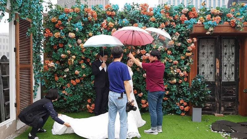 아리그라피 스튜디오 리뷰 - 이 꽃담장씬이 너무 좋았고 셀프웨딩 | 웨딩북
