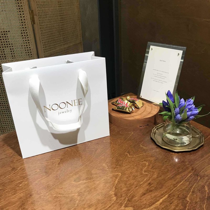 결혼 이야기가 오고가기 전부터 누니주얼리의 나무결 무늬 디자인이 너무 마음에 들어서 실물을 보기 전부터 예물은 여기로 정했다!라고 생각하고 있었어요. 남자친구에게도 사진을 보여줬었는데 세심하게 그걸 기억한 남자친구가 프로포즈링으로 누니 주얼리의 레이어드 링을 선물 했었지요. 예물로 할 반지와 어울리는 디자인으로 센스있는 프로포즈 링이었어요. 예물 반지로도 당연히 누니 주얼리로 상담하러 갔는데 원래는 곁에 테두리가 있는 나무결 무늬 디자인을 마음에 두고 있었지만 막상 꼈을때의 느낌과 레이어드링과의 디자인을 고려해서 테두리가 없는 디자인으로 선택했습니다. 심플하면서도 고급스러운 디자인으로 제 마음에 꼭 드는 100%의 선택이었어요. 당일 컨디션이 좋지 않아서 반지 사이즈가 애매했었는데 반지 사이즈를 잴수 있는 세트를 주시면서 3일동안 테스트를 해볼 수 있도록 안내해주셔서 꼭 맞는 사이즈도 선택할 수 있었어요. 실물이 나오기까지 제작 기간은 약 한달로 10월초 예식이었던 저희는 기간도 딱 좋게 9월 중순에 반지를 받아 볼 수 있었습니다. 가운데 작은 다이아를 할까말까 망설 였었는데 일단 하고 뒤로 돌려 착용하면 제가 원래원했던 더 심플한 디자인으로 착용하면 된다고 해서 다시 넣었답니다. 잘 선택한 거 같아요. 저희 강아지 까지도 마음에 들어하는 누니 주얼리 예물반지! 빨리 끼고 다니고 싶어요! 디자인 : 추천♥ 결혼 준비 전부터 누니 주얼리의 디자인이 너무 마음에 들어서 예물반지는 꼭 누니 주얼리로 해야지 하고 다짐하고 있었어요. 방문해서는 제가 찜한 디자인 이외에도 살짝 변형한 다양한 디자인을 보여주셔서 신랑과 제손에 꼭 어울리는 디자인으로 선택할 수 있었어요. 흔하지 않고 오래봐도 질리지 않을 디자인으로 선택해서 마음에 꼭 들었습니다. 품질 : 추천♥ 직접 손으로 하나하나 세공한다는 나무결 무늬는 실물로 받아 보았을 때에 사진보다 더 세밀하고 예뻤어요. 반지의 두께와 다양한 세공 방법 (세공각도?)도 하나하나 친절하게 설명해주셔서 꼈을때의 느낌을 세심하게 따져 선택할 수 있었습니다. 정성과 전문성에 품질도 기대 이상이었어요. 서비스 : 추천♥ 실은 바쁜 스케쥴로 상담 당일 제가 좀 아팠었는데 굉장히 무더운 여름이었음에도 아픈 절 위해 가게 에어컨도 꺼주시고 천천히 제가 괜찮을 때를 기다려주시면서 상담에 임해주시면서 (그리고 힘들지 않게 최대한 빨리 진행해주시기도 하셔서) 너무 감사했어요. 샵에 들어서면 편안한 분위기와 상담해주셨던 분의 서비스까지 모두 만족하였습니다.