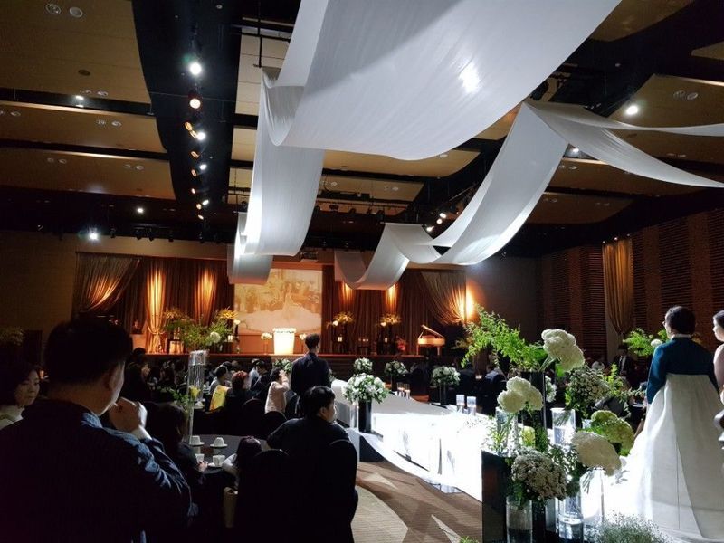 사진은 그랜드볼룸홀 사진이고 천고가 높은 홀을 원해서 해당 사진만 찍었어요~! 11층에 따로 떨어져있어 한적하고 좋지만 8층에 연회장이있어 가는길이 복잡하고 정신없어요~! 신부대기실은 정말 딱 간단한 대기실 뿐이고 매우 좁아요! 그래도 홀이 웅장하고 정말 넓어서 멋있었어요! 11시예식을 선택하면 할인이 많이 들어가네요 홀분위기 : 추천♥ 전반적으로 어두운 홀과 식장 위치가 매우 좋아요~! 그랜드볼룸홀을 제외하고는 천고가 낮은편이고 동선이 조금 어려운 편이네요 음식 : 보통♥ 하객으로 갔을때 적당했어요 토다이에서 나오는 음식이라하여 나쁘지 않았던거같지만 기억에 딱히 남는맛은아니네요~! 서비스 : 추천♥ 예약을해도 맛집순서기다리듯 다시 이름을적고 대기해야하는 점이 조금 별로였지만 막상 상담에 들어가니 매우 친절하시고 생각보다 견적도 엄청 저렴한 편이네요