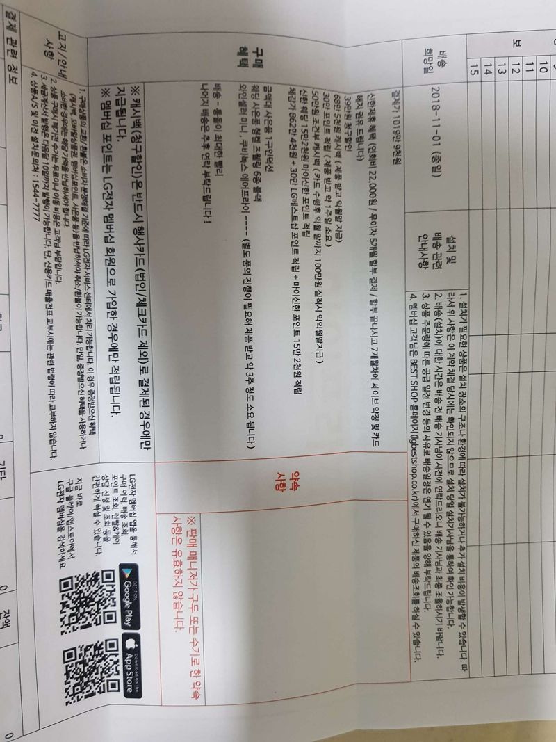 총견적 1050만원 청구할인 39만원 캐쉬백 68만원 + 14만원 조건부 캐쉬백 50만원 LG베스트샵 포인트 30만점 + 5만점 카드사 포인트 15만점 체감액은 베스트샵 포인트 빼면 864만원입니다. 12개월 무이자 할부 가능하구요. 사진은 친정집에 갈 통돌이 세탁기 포함인데 마지막 견적서가 사진이 없네요. 제가 써놓은 건 통돌이 빼고 3구 인덕션 넣어서 합한 금액입니다. 카드사 제휴이벤트와 오픈매장이용해서 저렴하게 구입한 거 같아요. 상품 : 추천♥ 김치냉장고 : 프리스타일 김치냉장고는 냉장고와 김치냉장고를 같이 쓸 수 있는 제품이에요. 냉동 냉장을 제맘대로 바꿀 수 있어요. 세탁기 : 트윈워시 일반 통돌이를 사려고 했는데 밑에 양말이나 속옷을 빨 수 있는 작은 통돌이가 달려있는 드럼이라 허리도 많이 안 숙여도 되고 따로 빨 수 있어서 편하겠더라구요. 워낙에 빨래할때 흰색옷, 색깔있는 옷, 수건과 속옷, 양말을 다 따로 빨거든요. 시간절약할 수 있을거 같아요. 공기청정기 : 퓨리케어 360 공기청정기는 삼성큐브가 디자인이 더 맘에 들었는데 혼수패키지로 사느라 엘지에서 같이 샀어요. 그래도 2순위였던거라 맘에 들어요. 친구들도 이거 쓰는데 좋다고 하더라구요. 스타일러 : 5벌용 오빠가 너무 너무 원해서 사게 됐어요. 겨울패딩이 들어가려면 5벌용은 사용해야 한다더라구요. 쿠첸밥솥 : 10인용 IR미작 쿠쿠썼었는데 요즘은 쿠첸이 대세라고 해서 쿠첸 한번 써보려구 골랐어요. 디자인도 이뻐요. 3구인덕션 가격 : 추천♥ 총가격은 1050만원이구요. 청구할인 39만원. 캐쉬백 132만원. LG베스트샵 포인트 25만점. 카드사 포인트 15만점 + a 그래서 체감액은 864만원입니다. LG베스트샵 포인트로 나중에 로봇청소기 구매하려구요. 무이자 12개월까지 가능합니다. 서비스 : 추천♥ 직원은 매니저분을 잘 만나서 친절하고 좋으셨어요. 사은품으로 1구 인덕션. 와인셀러미니. 에어프라이어. 국자뒤집게등 세트. 헹켈칼블럭. 밀양도자기. 락앤락. 인덕션용 냄비2개. 세탁바구니 받았구요. 이거는 같은 사양인데 디자인때문에 비싸다, 이게 실속있다 등등 설명도 잘 해주셨고, 추후에 배송문제때문에 전화문의 할 일이 많았는데 답변도 잘해주셨어요.