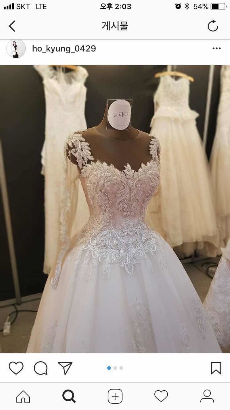 중세 스타일의 퍼지는 벨라인 드레스가 이쁘고 그런 스타일이 좋아서 샵 투어감. 블랙라벨 추가금 붙는 디자인들이 예쁘고 기본라인은 안봐서 모르겠음. 캡쳐해간 드레스들이 블랙라벨이였음. 화려한 공주 여왕 스타일 좋아하시는분께 추천. 드레스 퍼짐이 마니 퍼지니 버진로드 폭이 넓은곳에서 하는분께 좋을꺼 같다는 생각이 듬. 클라라만의 스타일이 뚜렷하고 드레스 딕테일 좋고 참 예뻤음. 최종은 다른 드레스 샵을 선택하긴했지만 마니 고민하게 만들었던 샵이다. 부원장님 친절도 굿!! 스타일 : 추천♥ 중세 귀족 벨라인 퍼지는 드레스가 주된 디자인. 블랙라벨 이쁨!! 넥라인이 이쁨!! 풍성하게 퍼짐 옷상태 : 추천♥ 블랙라벨만 입어봤고 드레스 상태 모두 좋았음. 서비스 : 추천♥ 가장 즐겁게 핏팅한샵!! 핏팅때 4벌 입어봄.