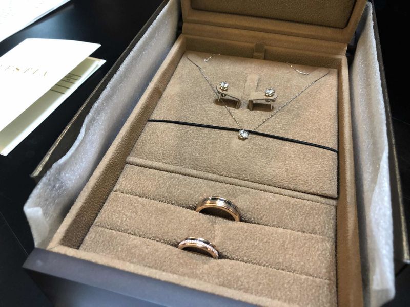 저희가 맞춘건 레스티아의 메인 디자인인 '레이첼' 이구요. 제가 정말 사진을 못찍어서 ㅠㅠ 순금반지처럼 나왔는데 로즈골드에 블랙 열처리된 금이랑 참깨다이아가 촘촘히 360도 감겨져있는 정말 예쁜 웨딩밴드랍니다. 다 개별링이 조합된거라서, 원하는 컬러의 금으로 조합할 수 있어서 최종 디자인 고를때 정말 고민 많이 했었는데 오래봐도 질리지 않고 제 손 컬러에 어울리는걸로 하자해서 로즈골드 + 블랙 조합으로 했는데 너무 세련되고 예쁜 것 같아요. 화이트 + 로즈골즈 조합도 정말 예뻐서 다갖고 싶을정도. 디자인 편하게 둘러볼수있는 분위기도 넘 좋구 직원분들이 항상 밝은얼굴로 맞이해주셔서 자꾸 가고싶은샵입니다. 저흰 웨딩밴드만 했는데, 다이아반지들은 더 이뻐여..... 유니크하고 세련된 웨딩밴드 찾으신다면 방문 추천드려요! 디자인 : 추천♥ 솔직하게 보여주신, 그리고 본 모든 디자인이 다 예뻣어요. 계약날에도 하나만 선택하기가 참 어려워서 고민을 암청했어요. 무엇보다 특색있는 디자인이 많고, 어디서 본듯함 느낌이 아니라 정말 처음보는 디자인이 많나서 신선했어요. 품질 : 추천♥ 가격은 예산에서 벗어나지읺도록 조정해주셨구요. 아무래도 청담에 있는 샵이고, 디자인특허 등 유니크한 디자인이 많아서 가격대가 저렴한편은 아니지만 충분한 가치를 가진다고 생각해요. 반지가 중량감이 있고, 완선품도 너무 만족스러워요. 서비스 : 추천♥ 직원분들 하나같이 너무 친절하세요. 여기말고도 청담예물샵 몇군데 더 가봤지만 가장 친절하고 강요없는 샵이였습니다. 재차방문하고 상담도 길었지만 불편한 기색 전혀없이 잘 응대해주셨너요. 주변에 소개하고 싶을정도예요