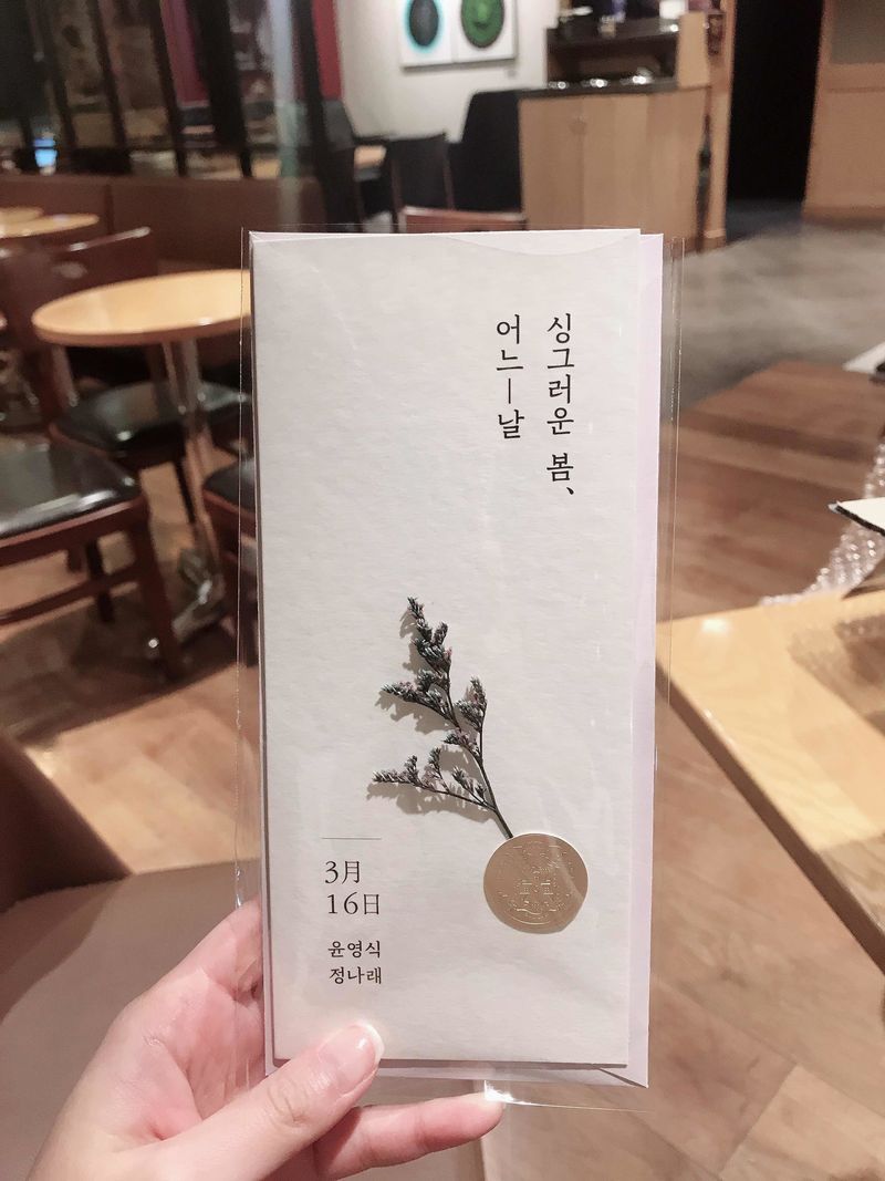 1. 저희 청첩장 앞면 2. 내지(개인정보는 가렸고 느낌만 참고하세요!) 3. 꼼꼼한 포장과 선물들 4. 여분과 제품 상태 5. 이뿐 저희 청첩장 또보세요!!!! ㅋㅋㅋㅋ 평소 친구들에게 선물하는걸 좋아하는 저라 그런지 이렇게 아기자기하면서 꽃을 선물하는 듯한 기분이 드는 청첩장이라 너무 만족스러워요! 사진 참고하시고 신시얼리를 선택하는데 도움이 되었으면 좋겠습니다! 디자인 : 추천♥ 처음 웨딩북을 통해 신시리얼리를 발견했을때 눈이 동그래졌던 기억이 있어요! 유니크하면서 고급지고, 특별한 신시얼리만의 디자인에 빠져 줄곧 청첩장은 신시얼리에서 해야겠단 생각만 들더군요 결국 신시얼리에서 청첩장 진행했고 너무너무 만족스러워요! 가격 : 추천♥ 저희는 신제품인 "코튼" 으로 제작을 했는데 샘플을 받지 않고 바로 진행을 해서 다른샘플은 어떤지 모르겠지만? 신시얼리가 다른업체에 비해 금액이 더 나가는데에도 불구하고 가격대비 품질은 최상인거 같아요 ㅎㅎ 빳빳한 종이지만 코튼이라 그런지 부드러운 질감 때문인지 봄예식인 저희예식에 맞게 포근한 느낌이 들어 좋아요! 가격대비 품질 굿! 후회안합니다! 서비스 : 추천♥ 일단 피드백이 정말 빨라요 제작의뢰하고 바로 다음날 1차 시안이 나왔고, 시안수정 요청하고 완성까지 해서 일주일이 안걸렸던거 같아요 찰떡같이 제말을 알아들주시는 센스가 있어서 그런건지 ㅎㅎ 피드백이 무엇보다 빨라서 좋았고 박스개봉할때 여분과 선물 그리고 편지까지 있어 기분이 좋아지더라구요 ㅎㅎ
