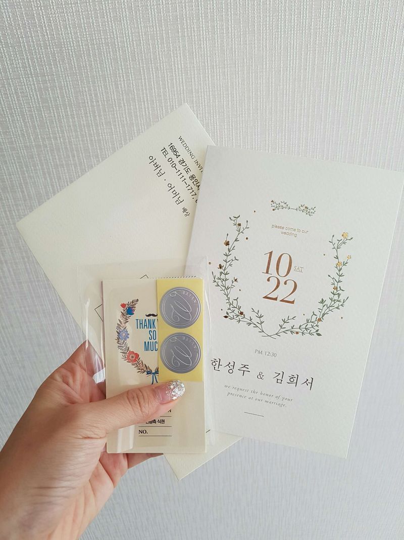 심플하고 날짜 잘보이구 좋아요~^^ 디자인 : 추천♥ 부모님들이 좋아하시는 심플한 디자인으로 골랐어요 날짜가 크게보이고 심플한것 위주로 골랐어요 크기는 생각보다 작아요 가격 : 보통♥ 700매에 40만원조금 안되게 산거같아요 가격대비 적절한것같아요 서비스 : 보통♥ 하루 홈페이지 접속이 잘안되어서 애는 먹엇지만 시안확인 수정절차가 비교적 빠르게 진행된것같아요 TIP : 아쉬운점은 홈페이지 접속ㅜㅜ 청첩장 고를때 인원수 + 50명정도 잡음 좋을것같아요