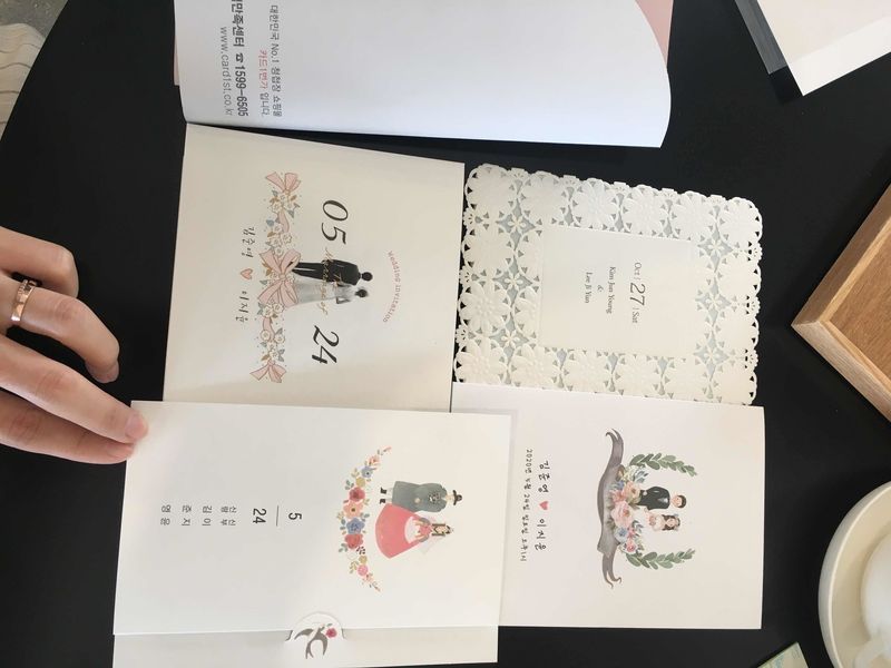 선택한 청첩장들 약간 러블리하기도 했지만 모아놓고 보니 전반적인 분위기가 따뜻한 느낌의 청첩장들이 많았어요-! 가격대비 퀄리티는 나쁘지 않았구 일러스트가 들어간 청첩장들도 과하지 않아서 좋았어요^^ 디자인 : 추천♥ 일러스트로와 레이스 느낌의 고급스런 디자인 까지 다양했어요 제가 고른게 그렇기도 했겟지만 전체적으로 러블리한 느낌이에요 가격 : 추천♥ 가격대비 무난한 품질의 청첩장인 듯 합니다 ! 서비스 : 추천♥ 식권 봉투들 필요한 것들을 꼼꼼히 챙겨보내주셨어요
