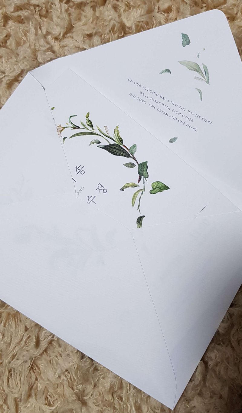 청첩장 샘플을 3군데서 받고, 고민고민하다가 샘플로 선택하지않았던 '그리너리'로 주문했어요~ 세트봉투가 있는 상품이어서 열어볼때 딱 화사한 느낌이 들 것같아서 선택한거였는데 역시!기대를 져버리지않네요~ 저는 그리너리 기본사이즈+세트봉투 300매를 결정했는데요~ 300매 선택시 샘플후기쿠폰으로 15만원이상이라 2만원 할인적용되었구요, 스템프 무료쿠폰이 보너스로 지급되었지요^^ 식권스템프보다 봉투스템프를 선택한게 정말 탁월한! 선택이었던 것 같아요🤗 양가 부모님용으로는 신랑,신부측 부모님 성함/주소로 봉투제작했고 지인 만나서 주는 용도로 백봉투받아 봉투에 직접 스템프찍었는데 넘 신선하달까요..? 제가 제 청첩장이라 그런게 아니라..넘넘 예쁜거있죠!! 게다가 청첩장 향수도 주셔서 설명서대로 했는데, 봉투 열자마자 향긋! 하더라구요~ 받는분들 마음에도 들었으면 좋겠어요😊💕 추가적으로 청첩장액자, 에코백, 여분의청첩장/봉투,식권등 박스열자마자선물보따리가 펼쳐졌어요 고맙습니다 디자인 : 추천♥ 3월이 예식이라 산뜻한 봄느낌이 좋을것같아서 선택하게 되었는데, 사이트에서 본 것보다 실물이 더 예뻤어요~ 가격 : 추천♥ 300매, 샘플후기작성 후 할인 -2만원 뒤늦게 준비하게되서 빠른배송 신청했는데요~화요일 저녁결제, 수요일 오전 9시경 시안등록. 시안이 수정할 것 없이 바로 잘나와서 오전10시에 시안확정 후 인쇄요청되어 오후1시에 출고! 다음날인 목요일에 받았어요^^ 비용은 35,000원 추가였지만 전~혀 아깝지 않았습니다! 서비스 : 추천♥ 급한마음에 고객센터로 전화도 드렸었는데, 자세히 알려주시고 고민되는사항 말씀드렸을때 조언해주셔서 선택하는데 많은 도움이 되었어요~ 감사합니다^^