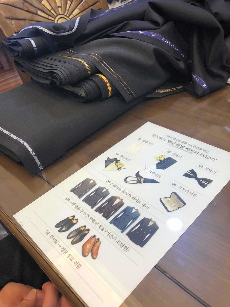 지난주 주말에 예랑이랑 예복 투어를 다녀왔어용 ㅎㅎ 예랑이 업무 특성상 정장을 입을 일이 별로 없어서 제대로 된 정장도 한 벌 없었고, 그래도 예복이니까 맞춤으로 해주고 싶은 마음이었어요 청담에서 100만원 가까운 돈으로 하자니 부담이었는데 종로는 훨씬 저렴합니당 위치는 혼수품의 메카인 종로거리에서 그리 멀지 않은 곳에 있어요~ 건물이 눈에 잘 띄지는 않으니 잘보고 찾으셔용 상품 : 추천♥ 맞춤예복 하게 되면 턱시도 추가로 빌려주시고, 여러 악세사리들 대여 및 서비스로 주시는 구성도 청담이랑 동일합니당 ㅎㅎ 가격 : 추천♥ 청담에서 가장 저렴한 패지키보다도 15만원 정도 저렴한 금액으로 수입원단 맞춤 하실 수 있어서 메리트 있다고 생각해요 ㅎㅎ 서비스 : 보통♥ 인터넷으로 미리 원단이고 뭐고 조사는 했지만 아무것도 모르는 저희 커플을 위해 원단 꺼내주시며 설명해 주셨고 확실히 청담쪽 예복샵보다 훨씬 저렴해요~