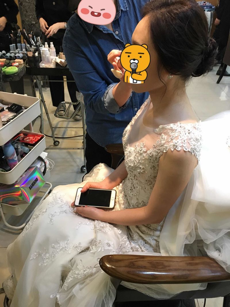 저는 2시예식이었기때문에 8시30분 IN, 11시30분 OUT 으로 스케줄을 예약했어요~ 본식때는 많은 신부님들의 신부공장이었다는 후기에 사실 걱정을 많이 했었습니다. 당일날 가보니 역시 메이크업 받으시는 분들이 많긴 했었지만, 앉을자리가 없을 정도는 아니었어요~ 아무래도 제가 12월에 결혼식을 올렸던지라 조금은 덜 바쁜거같더라구요~ 비수기에 결혼하면 이런점은 좋겠더라구요. 아무리 그래도 토요일인지라 역시 대기시간은 길긴했습니다. 촬영때보다 메이크업을 받는 시간자체는 짧은데, 대기시간이 길어서 촬영때보다 더 오래걸렸어요~ 촬영때는 수분팩도 해주셨는데 본식때는 그런건 없었어요. 그나마 저는 메이크업샵에서 젤네일을 같이 받았기때문에 기다리는 시간은 덜 지루했습니다. 평소에 네일 잘안하시고 시간없으신분들은 당일에 메이크업과 동시에 받으시는것도 괜찮은거같아요~ 가격도 저렴했고 퀄리티도 괜찮았습니다ㅋ 스타일 : 추천♥ 워낙 신부공장으로 유명한 곳인만큼 딱 신부의 정석같이 예쁘게 메이크업 해주셨어요^^ 담당샘 : 추천♥ 촬영때와 본식때에 같은실장님에게 메이크업 받았는데, 촬영때 메이크업 스타일도 기억해주시고 그때 괜찮았는지 물어봐주시기도 하셔서 좋았어요^^ 서비스 : 추천♥ 본식때는 워낙 손님이 많다보니 대기시간이 길긴 했는데 스탭분들의 응대는 괜찮았어요~