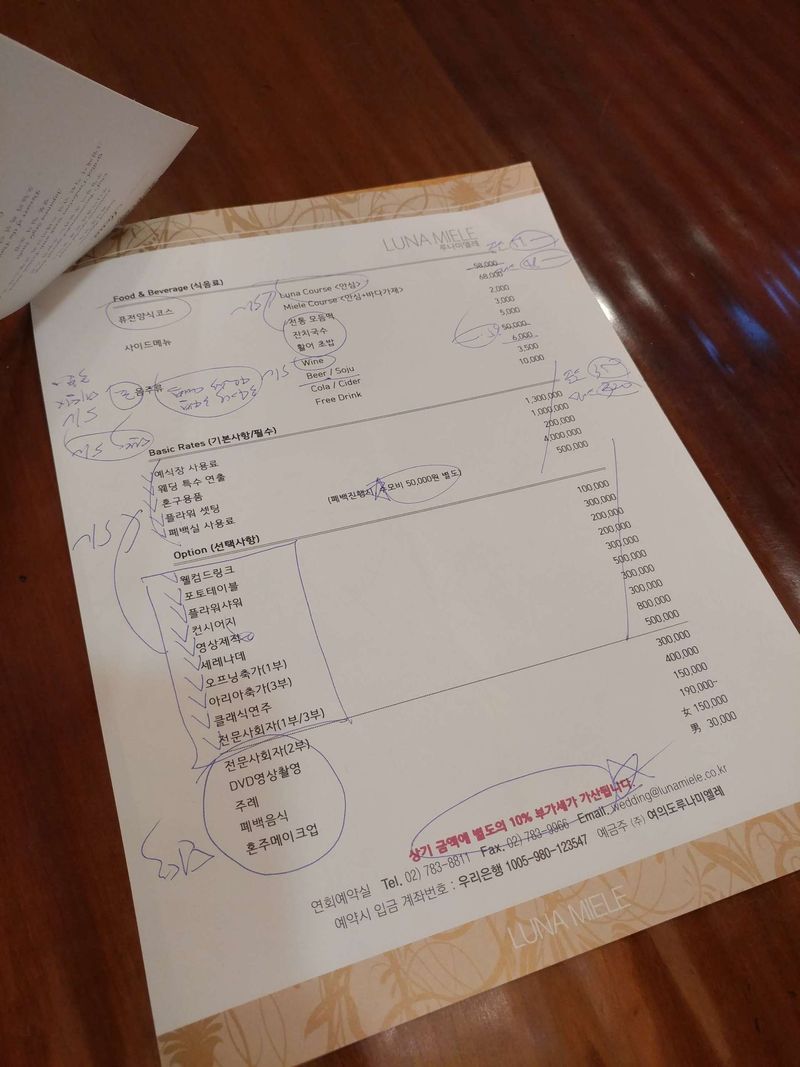 사진이 어둡게 나와서 잘 안보이지만 직접 보시면 감탄하실꺼예요~ 사실 홀 투어전에 사진만 보고 꼭 상담받아야지 했던곳이였거든요 ㅎㅎ 보증인원과 동시예식이라 제외했지만 너무너무 우아한곳입니다!! 홀분위기 : 추천♥ 2개 홀 모두 화려해요~ 로비부터 신부대기실, 홀 모두 고급지고 우아한 느낌이예요!! 음식 : 보통♥ 동시예식이라 음식을 직접 확인하지는 못했어요~ 주류가 별도라 아쉬웠지만 와인을 주신다고해서 오오~~ 했습니다 ㅎㅎ 서비스 : 추천♥ 상담 친절하게 해주셨고 일찍 갔는데도 바로 해주셔서 좋았어요!!