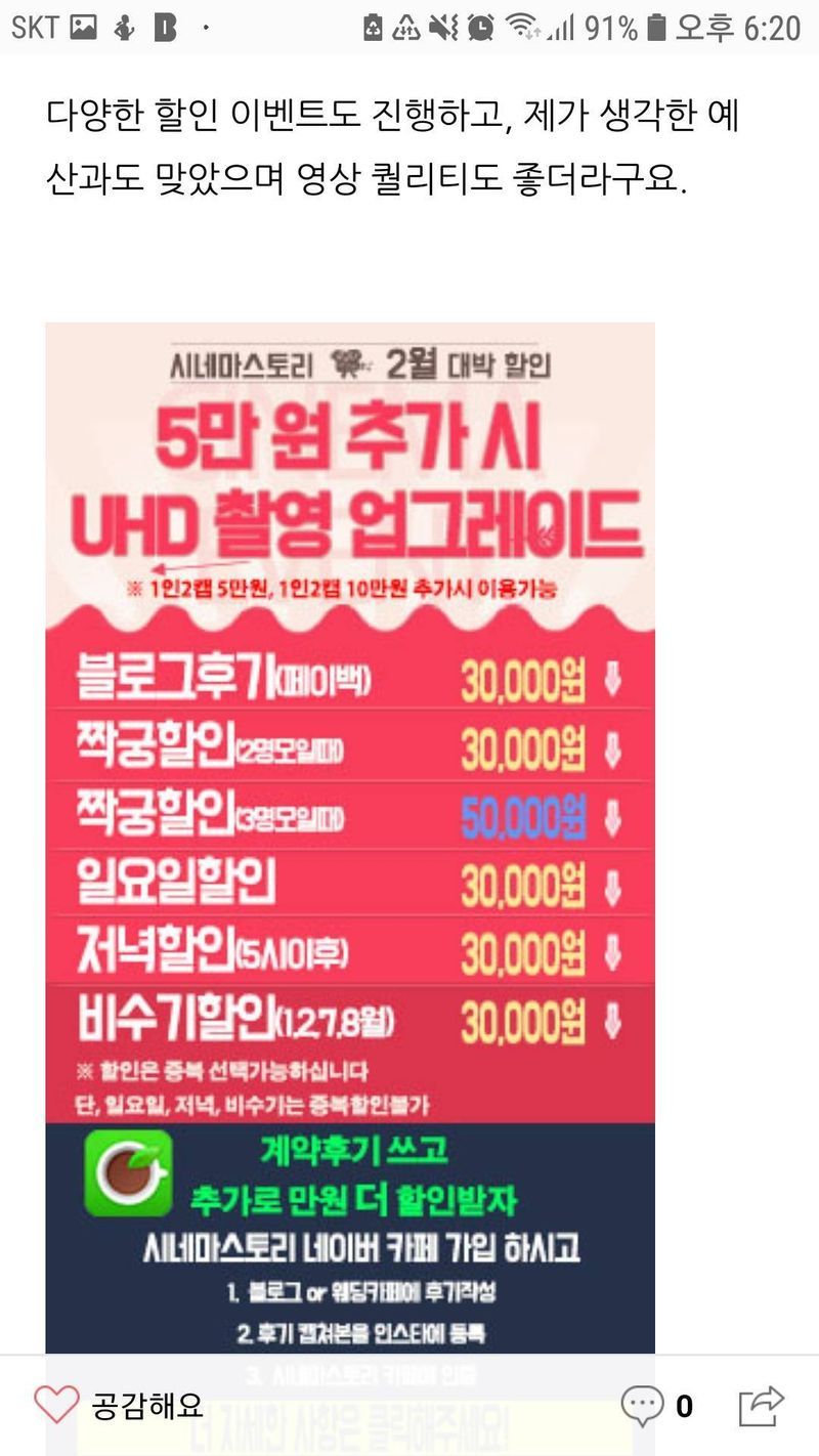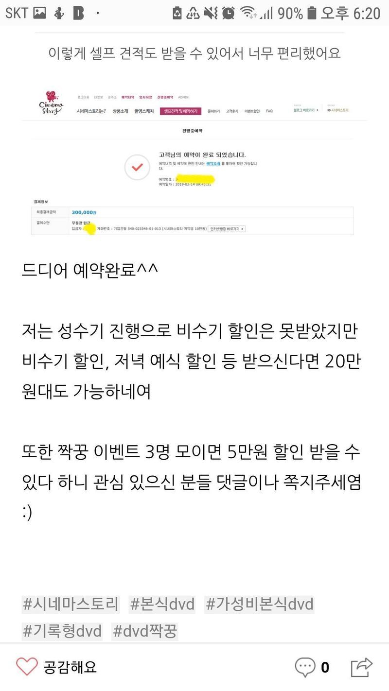 본식이 약 한 달 가량 남은 시점에서 전혀 관심갖지 않던 본식 DVD를 해야겠다고 마음먹게 되었습니다 ​ 저만 생각하면 솔직히 진행하지 않으려 했는데 나이들어가는 부모님 생각하니 영상으로 꼭 남겨놓고 싶은 마음이 급!! 들어서 여러 업체 꼼꼼하게 비교하던 중! 최종 결정하게 된 업체는 시네마스토리 입니다. ​ 프리미엄 영상 말고 기록형 영상으로 업체 여러곳을 엄청나게 비교했답니다. 시네마스토리가 가성비 갑인 것 같아요^^ ​ 다양한 할인 이벤트도 진행하고, 제가 생각한 예산과도 맞았으며 영상 퀄리티도 좋더라구요. dvd 짝꿍 구해욤^^) 신규이신 분들 댓글 달아주세여 스타일 : 추천♥ 시네마스토리에서 본식 dvd 계약했어요!!! 깔끔한 스타일이에여 가격 : 추천♥ 다양한 이벤트 중이고 영상 퀄리티도 괜찮아요 서비스 : 추천♥ 카톡으로 안내해주시니 편리합니다 ^^)