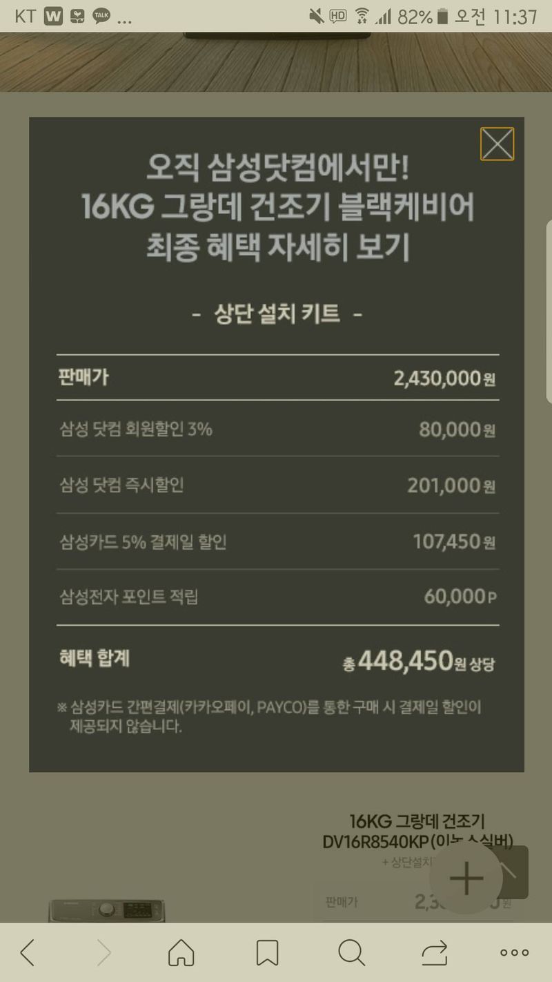 <기대평> 16KG 그랑데 건조기 DV16R8540KV 불과 2년전만 해도 건조기에 대해 관심이 없었어요 자취중이라 이불빨래는 세탁소에 맡기곤 했는데 집에서 세탁소보다 가까운 위치에 코인세탁소가 생겨서 이용해봤더니 빨래와 건조까지 두시간도 안걸려서 끝나니까 넘 좋은거있죠 그 뒤론 tv에 그랑데가 나오면 사고싶다 생각이 들더라구요 광고보면 저 작은 건조기안에서 저렇게 큰 이불이 나오니까 신기하더라구요~ 지옥철에서 수많은 사람이 빠져나온것처럼요 근무지에 건조기가 있는데 빨랫감이 많을땐 잘 안마르던데 그랑데는 360개 에어홀이 있어서 많은 빨래도 구석구석 건조가능하다는 점이 끌리네요 그리고 지금처럼 추운 겨울날에는 집에서 말려도 빨래가 잘 안마르고 간혹 냄새나는 경우도 있어서 밖에서 말리자니 미세먼지가 걱정되는데 그랑데 쓰면 그럴일 전혀 없을테고, 혼자 자취하다가 이제 신랑이랑 둘이 살게되면 그만큼 이불이나 옷,패딩 등 빨래양도 많아지고 건조할 것들도 많아지니 그랑데 사면 아주 요긴하게 잘 쓸 것 같아요 상품 : 추천♥ <기대평> 16KG 그랑데 건조기 DV16R8540KV 가격 : 추천♥ 삼성이나 타사나 건조기 가격대가 저렴한편은 아니지만 삼성카드 할인+삼성닷컴 할인+ 삼성포인트까지 받으면 정가보다 훨씬 저렴한 가격에 받을 수 있으니 괜찮은 가격이라 생각되네요! 서비스 : 추천♥ 신혼집도 안구했고 식도 많이 남아있어서 아직 혼수가구보러 안다니구 있어서 삼성매장에는 방문 하지 않았지만 삼성 스마트폰을 쓰고있어서 서비스센터 방문한적 있는데 맞이 해주시는분부터 수리기사분까지 모두 친절하셔서 이래서 삼성쓰는 사람이 많다는걸 느꼈습니다. 삼성닷컴에만 들어가도 그랑데 건조기 구매시 받을 수 있는 혜택을 한눈에 보기 쉽게 최종 혜택 자세히 보기가 있어서 좋았고 삼성챗봇이 있어서 매장 못지않게 상담 받을 수 있는점도 좋았습니다.
