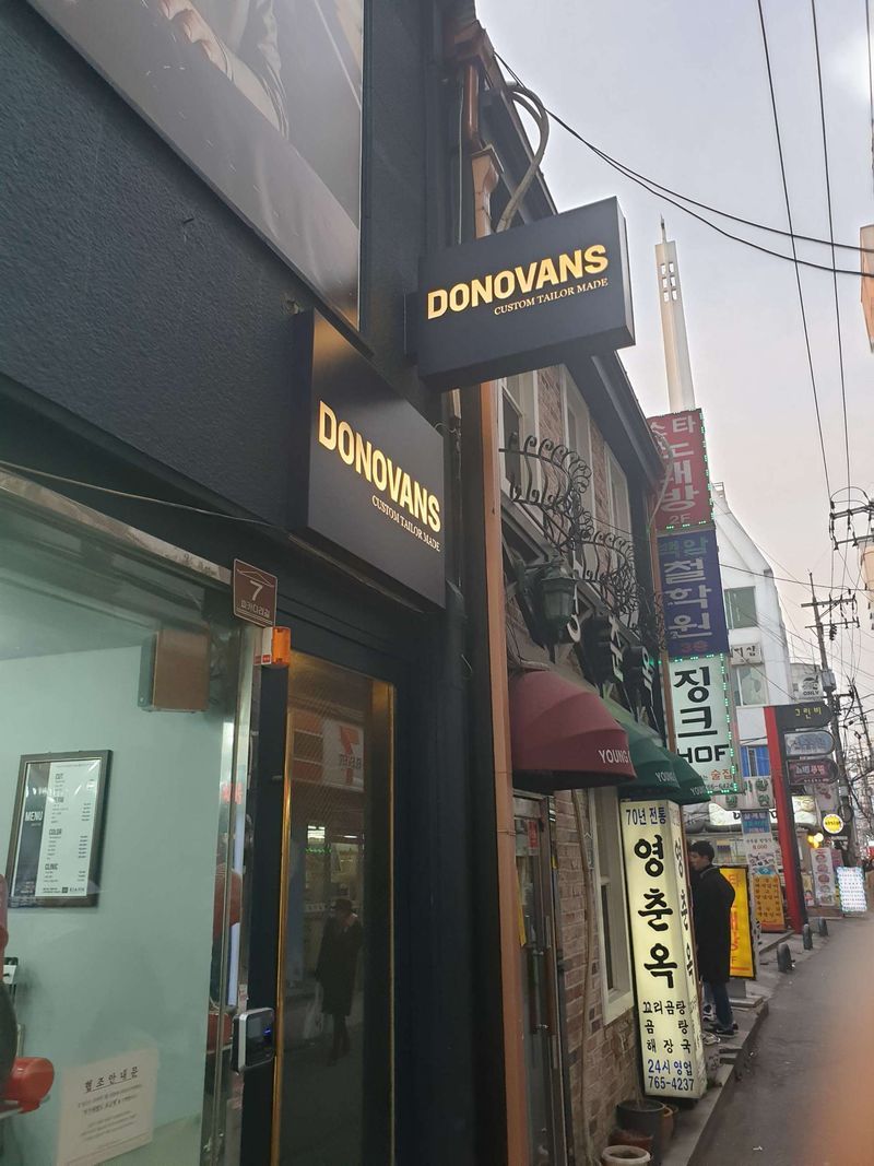 도노반스는 후기가 좋아서 방문하게 되었는데 다른 업체들과 제조 과정이 약간 차이가 있더라고요. 다른 부분에서 아끼고 원단에 과감히 투자해보기로 하였고 양복을 많이 입는 예랑 직업 특성 상 바지 1개를 더 추가하야 계약했습니다. 상품 : 추천♥ 예랑이가 딱 떨어지는 느낌의 무게감 있는 원단을 마음에 들어해서 영국 허더스필드와 이태리 아리스톤 두고 고민하가가 아리스톤 선택했어요. 가격 : 추천♥ 청담 샵 대비해서 금액 부분에 메리트는 있어요. 하지만 가봉 공정이 아닌 기성 사이즈를 수선하는(?)방식이여서 타 업체와 직접적인 비교를 하긴 어려워 보입니다. 서비스 : 보통♥ 직원분은 대체로 친절했습니다. 저희가 궁금한게 많아서 굉장히 많은 질문을 했는데 열심히 답변을 주셨어요.청담 샵 중 예복 스타일 별로 디테일한 상담을 받고난 뒤여서 전문적인 느낌보다는 예복으로 많이 하는 스타일을 추천해주신다는 느낌을 받았어요. 반전은 그 스타일이 또 맘에 들어서 계약하고 왔어요. 이왕 하는거 좋은 원단으로 사주고 싶어서요 ㅎㅎ