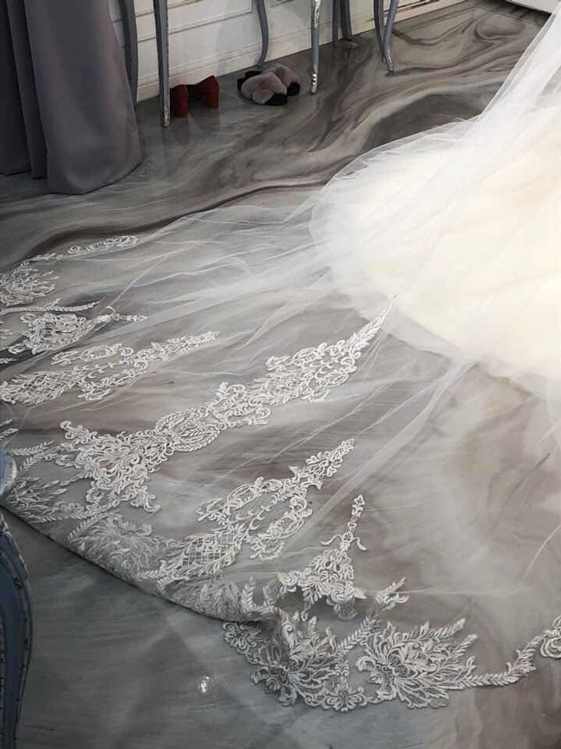 베일 디테일이 너무이쁘더라고요 하객들이 뒷모습을 많이 보기 때문에 베일이 너무 중요한데 드레스도 드레스지만 베일이 매우 인상적이었습니다:) 스타일 : 추천♥ 화려한 비즈가 좋아서 여기로 선택했어요 아이보리빛의 화려하고 따뜻한느낌의 드레스가 많았어요~ 옷상태 : 보통♥ 특별히 좋지도 나쁘지도 않았던것 같아요 사실 입어볼땐 정신없어서 잘 모르겠어요ㅜㅜ 서비스 : 추천♥ 제가 두벌 중에 고민하니까 둘다 입을수 있게 해주셔서 총 5벌 입어봤어요 고민도 함께 해주시고 친절하셔요:)