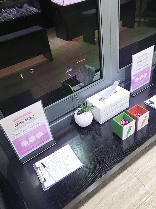 친절한것도 친절하시지만 예비 부부들한테 어울리는 스타일의 예물을 골라줄 수 있는 안목?노하우도 중요하다고 생각하는데 이런 부분에 있어서 진짜 믿음직스럽고 마음에 들었어요~ 권하는것도 부담스럽지 않으셨고 저희 의견이 최대한 반영된 스타일로 할 수 있도록 많이 서포트 해주셨거든요ㅎㅎㅎ 서비스도 좋고 해서 기분 좋게 잘 계약하고 온거같아요! 테라주얼리 상담 받아보시는거 추천드려용 디자인 : 추천♥ 여러 디자인을 가져오셔서 하나씩 끼워보는 토너먼트 식으로 디자인을 추려나갔어요ㅎㅎ그렇게 하다 보니까 저나 오빠한테 어떤 스타일이 어울리는구나,취향에 잘 맞는구나를 알 수 있었어용 저희는 3부다이아세트랑 웨딩밴드를 맞췄는데 저희 둘 다 의견 엇갈림 없이 마음에 드는 스타일로 계약하고 왔어요~~ 보유하고 계시는 반지가 워낙 많아서 그런가 고르기 힘들 정도로 예쁜게 많아서 고민 좀 했지만 추천해주신걸로 잘 선택했네용ㅋㅋㅋ 대여 받은 티아라도 예뻐요♡ 품질 : 추천♥ 무상 a/s도 평생이고 상담해주신 이사님께서 품질에 대해 자부심을 갖고 설명해주신다는 느낌이었어요~~반지는 착용하고 다니다가 색상 변경 하고 싶으면 해주신다고 하셨어요!!ㅋㅋㅋ 다이아몬드에 대한 지식이 아예 없었는데 김은주이사님이 자세하게 설명해주셔서 믿음도 가고 많이 배웠네요~~ 서비스 : 추천♥ 여자분이셔서 그런가 반지 고를때 공감대가 많았어요! 상담 받으면서 지루하다는 느낌 없이 재밌게 잘 고르고 온 것 같아요~ 모르는게 많아서 이것저것 물어보고 골랐다가도 변경하고 해서 귀찮으셨을텐데 내색 없이 잘 대해주셔서 너무 만족스러워요~~ㅎㅎ TIP : 여자분이셔서 그런가 반지 고를때 공감대가 많았어요! 상담 받으면서 지루하다는 느낌 없이 재밌게 잘 고르고 온 것 같아요~ 모르는게 많아서 이것저것 물어보고 골랐다가도 변경하고 해서 귀찮으셨을텐데 내색 없이 잘 대해주셔서 너무 만족스러워요~~ㅎㅎ