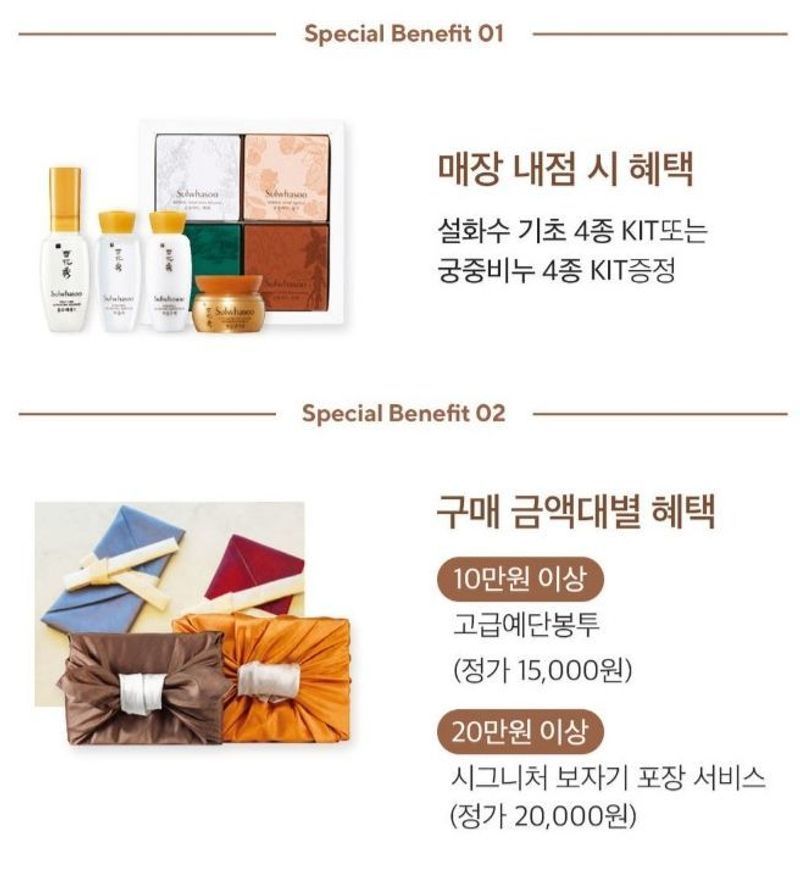 웨딩북을 통해서 설화수업체을 만날 수 있다니 너무 기대되요 ㅎㅎ 예비 시어머님이 좋아하시는 브랜드라서 ㅇㅖ단으로 생각하고있었는데 ㅎㅎ 혜택도 좋구 빠른 시일 내에 방문해야겠어요 ㅎㅎ 상품 : 추천♥ 예비시어머님이 좋아하시는 브랜드라서 예단으로 구매할 예정이에요 설린 라인으로 예상중인데 방문해서 비교하려합니다 가격 : 추천♥ 가격대비 구성이 참 좋고 워낙 유명하고 어머님들이 좋아하는 브랜드라 믿고 구매할수있을거같아요 서비스 : 추천♥ 웨딩북 제휴업체인 만큼 믿음이 가네요~^^