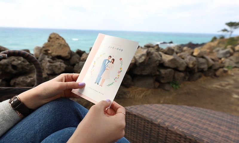 수정작업 후 최종OK 하고 제작중에 있어요! 예쁜 일러스트청첩장 하게 되어 넘 기대되요! https://m.blog.naver.com/damececil/221531306219 디자인 : 추천♥ 먼저 샘플 주문해서 꼼꼼하게 훑어본 후 결정했는데요. 저희 커플과 잘 어울리는 일러스트청첩장이 맘에 들었고, 뒷면을 펼쳤을 때 손을 맞잡은 노부부의 모습에서 잔잔한 감동이 있어서 느낌이 좋은 청첩장이었어요 가격 : 추천♥ 가성비 굳이에요. 종이재질도 너무 좋고 펀칭되어있는 디자인들도 깔끔했구요. 디테일이 너무 예쁜 보자기카드였습니다 서비스 : 추천♥ 폰트변경, 내용변경, 약도변경으로 인해 여러번 수정요청이 있었음에도 불구하고 처리를 완벽하게 해주셔서 넘 좋았어요!