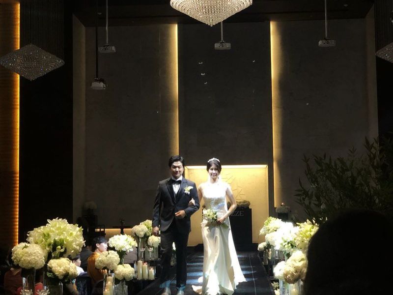많이들 하시는 스타일의 부케지만 생각보다 가격대가 좀 나갓엇어요!! 의외로 비싼 꽃이엇어요 ㅎㅎ30만원대엿구 신랑 코사지도 이쁘고 싱싱하게 잘 와서 좋앗어요 다만 부케의 크기가 크지않고 혼주 코사지는 기본 코사지라 이것도 추가요금을 내고 신랑신부랑 톤매치를 시킬걸 하는 후회는 잇어요 (기본코사지는 보라색깔 꽃) 시간에 맞게 메이크업샵으로 배송도 잘왔고 전체적으로 만족햇습니다~!! 부케 : 보통♥ 슬림한 머메이드 라인 드레스에 맞게 길쭉한 스타일로 골랏어요 예식장이 어두워서 부케도 하얀톤으로 맞췃구요!! 가격 : 추천♥ 30만원대 후반으로 맞췃고 생각보다 부케의 크기가 크지는않앗지만 꽃 자체는 싱싱해서 식이끝날때까지도 괜찮앗어요 서비스 : 추천♥ 신랑한테 이벤트하려고 추가로 꽃 10송이 주문햇는데 그거까지 이쁘게 포장잘해주시고 좋앗어요~!!!