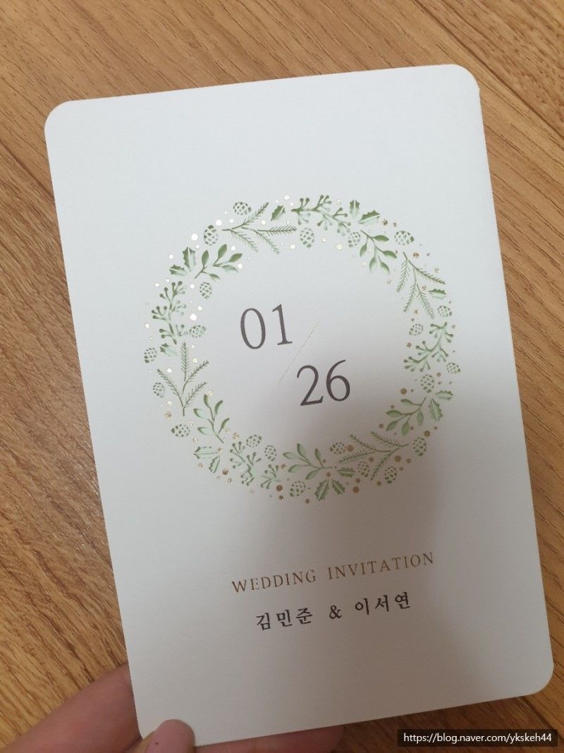 다양한 디자인이 있어 맘에들었고 종이 재질이 정말 좋습니다~~ 무료로 제공되는 모바일 청첩장도 이쁘게 잘 나와서 칭찬도 많이 들었네요~~^^ 보자기카드 청첩장 추천합니다! 디자인 : 추천♥ 종이도 빳빳하니 재질이 좋고 세련된 디자인이 많은것 같아요~~ 가격 : 추천♥ 350장 주문했고 가격은 19만원입니다~~^^ 샘플보고 고른거라 넘 만족해요 서비스 : 추천♥ 잉크같은게 묻어서 와서 받자마자 AS신청했는데 담날 아침 운영시간 되자마자 연락이와서 AS건을 제일 먼저 처리해 주겠다고 하면서 친절하게 응대해주셔서 좋았습니다~!