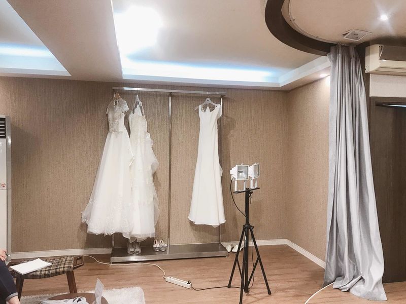 조명이랑 피팅해보는 단상이랑 예랑이구 앉으 기다리는 곳 컨디션은 세군데 피팅해본 샵들중에 제일 컨디션 좋았어요^^ 스타일 : 추천♥ 드레스가 전체적으로 유니크했고, 직원분의 프라이드가 강해 자신감있어보였어요. 옷상태 : 보통♥ 신상 독특한 어디서 쉽게 볼 수 없는 디자인의 드레스를 보여주셨고 패턴이나 이런게 제가 추구하는 심플한 스타일이랑 조금 달라서 최종결정을 하진 못했지만 옷 보관 상태는 좋아요~ 서비스 : 추천♥ 친절하시기는 했는데 당일계약을 강요하시면서 다음샵에 가지 마시라고 약간 시간을 끄시는 듯한 느낌? 저도 물론 고민을 하긴 했지만 그바람에 다음샵에 지각하여 피팅비만 내고 못입어볼 뻔 했네요~ 그부분만 빼면 좋았습니다