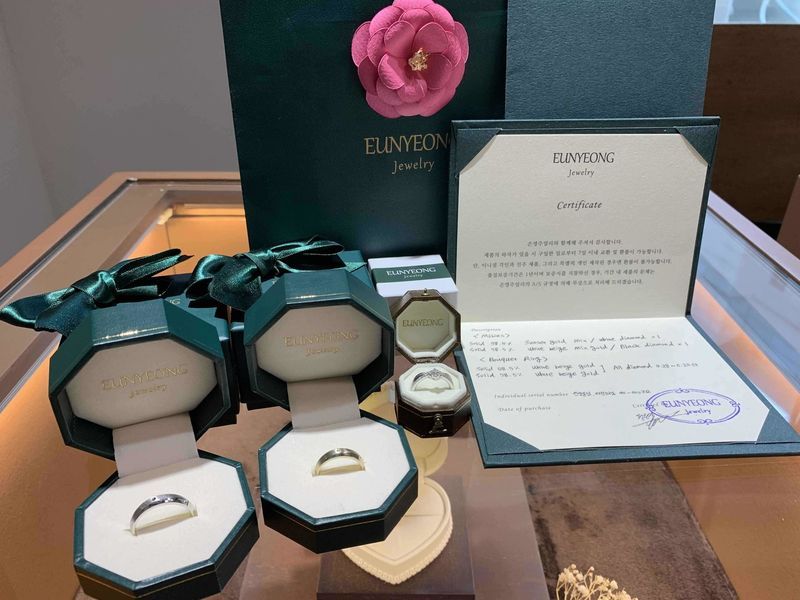 저희는 웨딩밴드로 뫼비우스의띠(예랑: 화이트골드+블랙다이아, 예신: 노을빛골드+화이트다이아)를 했고, 프로포즈링으로 부케링을 맞췄어요. 받아보니 역시 마음에 들어요!! 재방문 의사 있습니다.!! 결혼준비를 하면서 여러 사람과 업체를 만나면서 이 업계는 예비부부를 돈으로만 본다는 느낌을 많이 받았습니다. 근데 유일하게 그런 느낌을 받지 않은 곳이었어요. 단시간 내에 많은 것을 고민해야하고, 결정해야하는 지금 함께 고민해준 은영주얼리가 참 감사합니다.