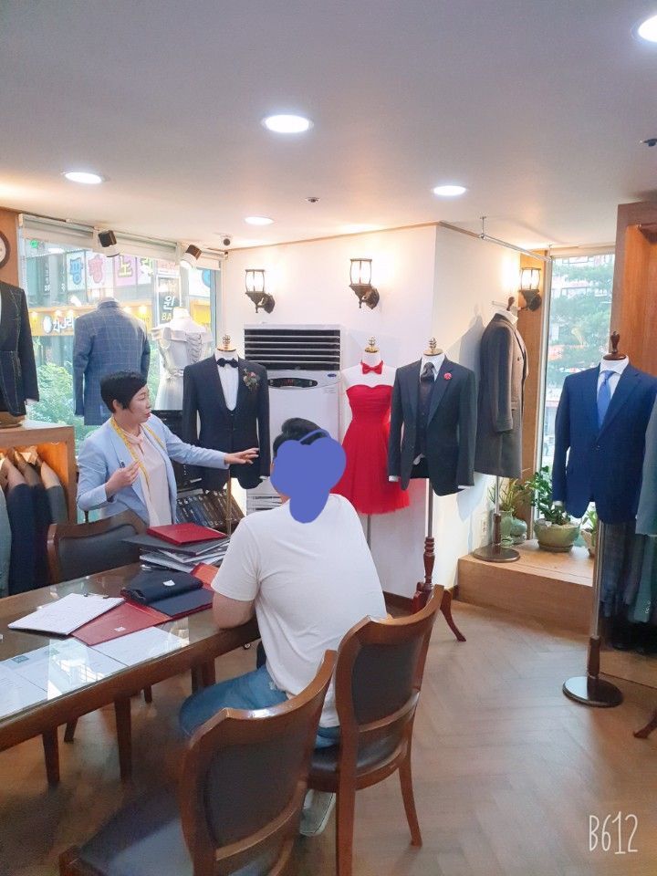 편안한 분위기! 친절한 상담! 착한 가격! 높은 퀄리티! 모든걸 만족하는 HK테일러평촌점 입니다. 혼주 예복, 친구들 예복도 여기서 할 예정입니다. 상품 : 추천♥ 웨딩 패키지로 구매하였습니다. 맞춤정장, 셔츠, 타이, 촬용복, 악세사리 대여가 기본 구성으로 설정되어 있었습니다. 촬용복은 신랑 신부 모두 대여가 가능합니다. 사이즈도 왠만한 사이즈도 다 있어서 부담없이 대여할수 있을거 같습니다. 가격 : 추천♥ 예복 맞출려고 첨당동 포함 5군데 업체를 돌아 다녔는데 그중에 가장 퀄리티도 높고 가격도 착했습니다. ( 가장 싸다는게 아니라 가성비 갑!! 품질갑!!), HK테일러 전용 원단인 Hk페브릭 150수! 어지간한 수입원답보다 좋은거 같습니다~ 서비스 : 추천♥ 요즘 정장 트렌드, 유행 안타고 오래입을수 있는 디자인, 체형에 맞는 디자인 등 모든것을 편안하게 상담해 주셨어요~ 더운 여름에 시원한 음료도 많이 주시고 주차도 종일권으로 끊어주시고( 다른 볼일 더 보고 와도 됩니다~)암튼 말로 설명 못하게 편안하게 상담 받았어요( 너무 마음에든 나머지.. 가봉하러 갔다가 구도도 맞추고, 밸트도 구매한건 안비밀~~!)